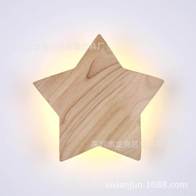 新款实木壁灯创意木艺书房灯日韩式现代led星星儿童墙壁灯装饰灯