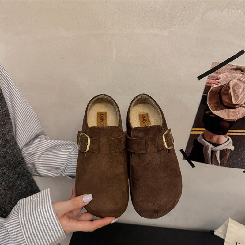 厚底勃肯鞋女2025新款冬季女鞋加绒半拖一脚蹬穆勒鞋子增高博肯鞋