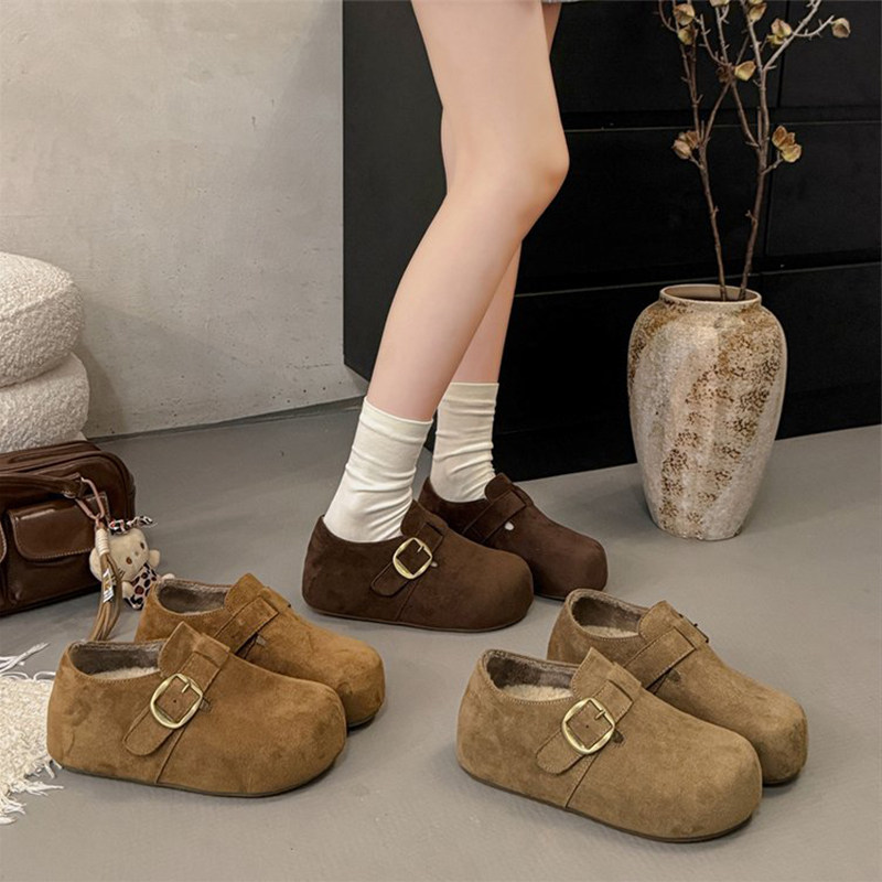 加绒勃肯鞋2025秋冬新款厚底内增高5cm全包博肯鞋小个子毛毛鞋女