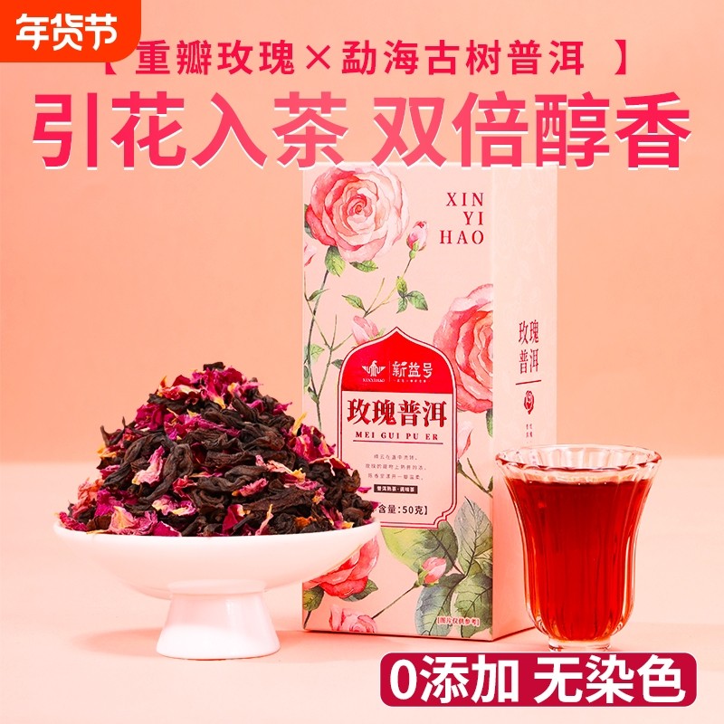 新益号重瓣玫瑰普洱茶熟茶散茶云南特产玫瑰花茶伴手礼自己喝茶叶