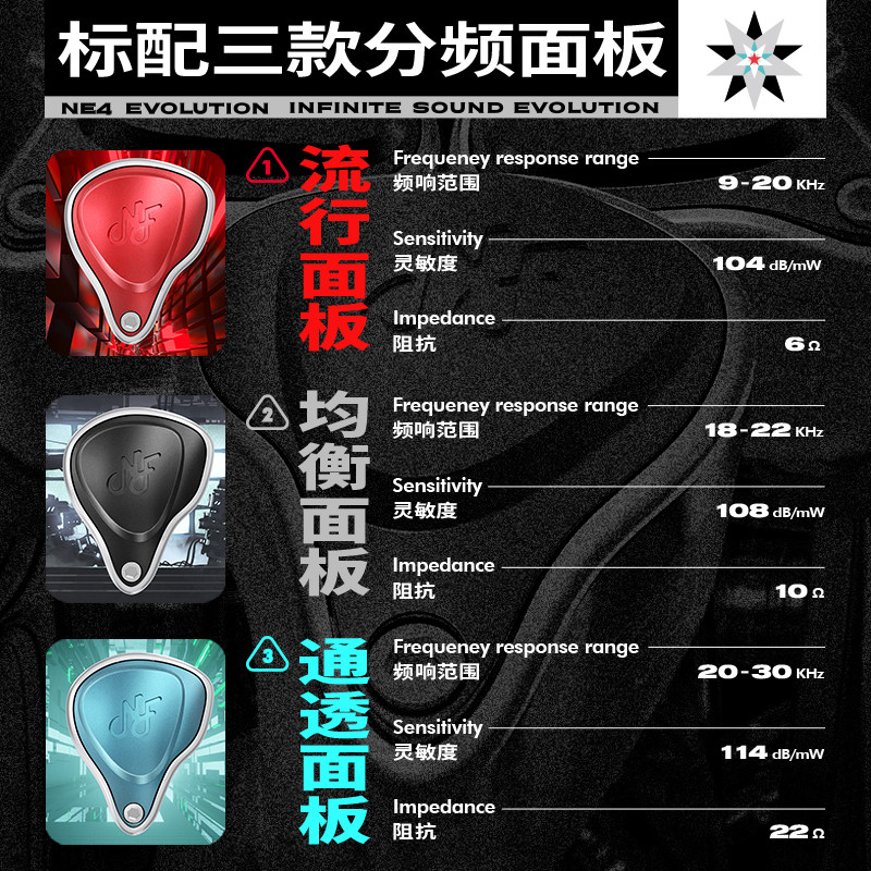 宁梵声学NE4 Evolution可换面板入耳式四动铁耳机主播监听耳返