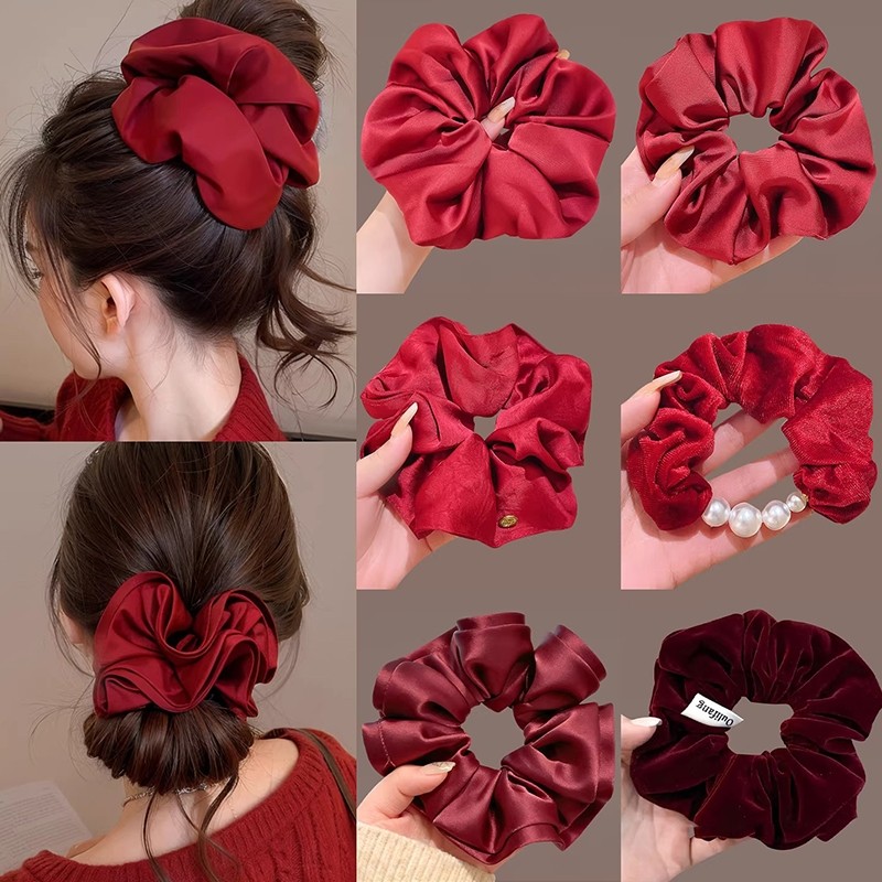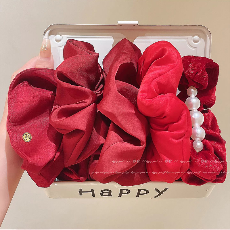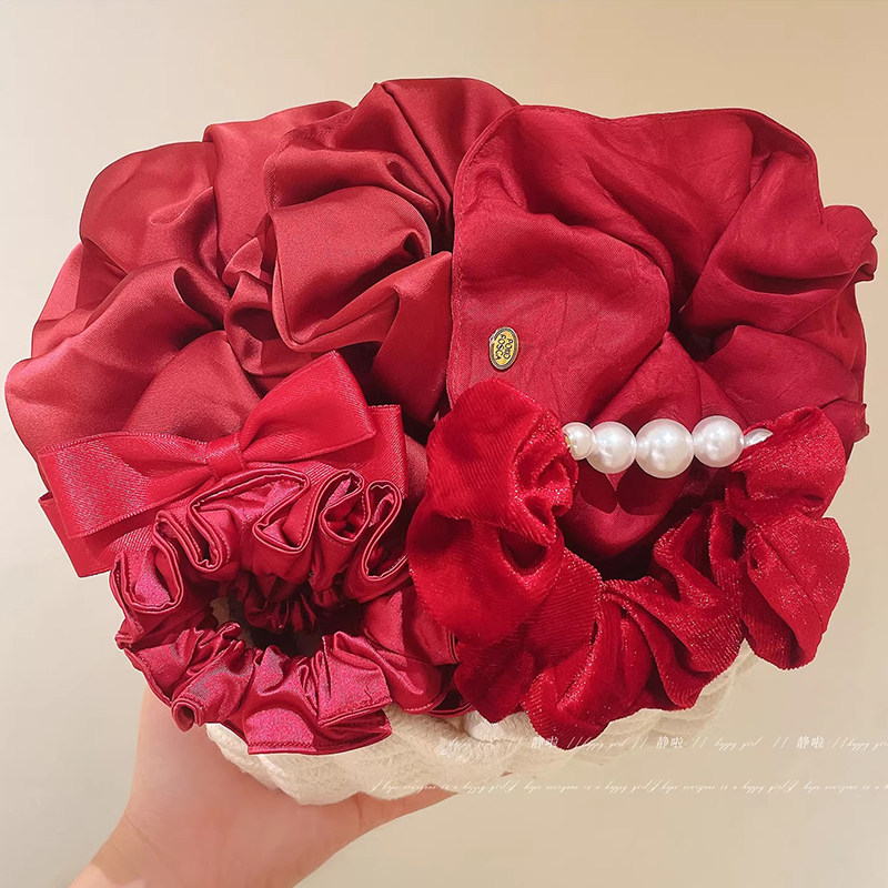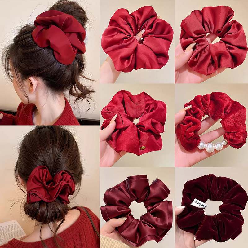 新年红色超大号真丝大肠发圈头绳女2025新款高级感丸子头发绳头饰