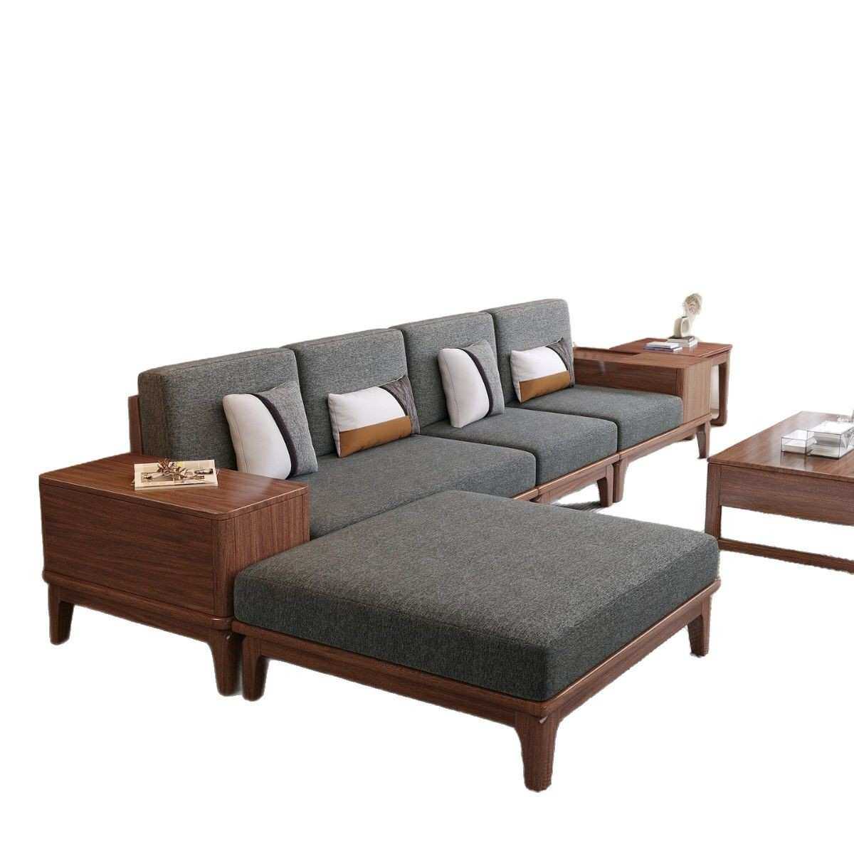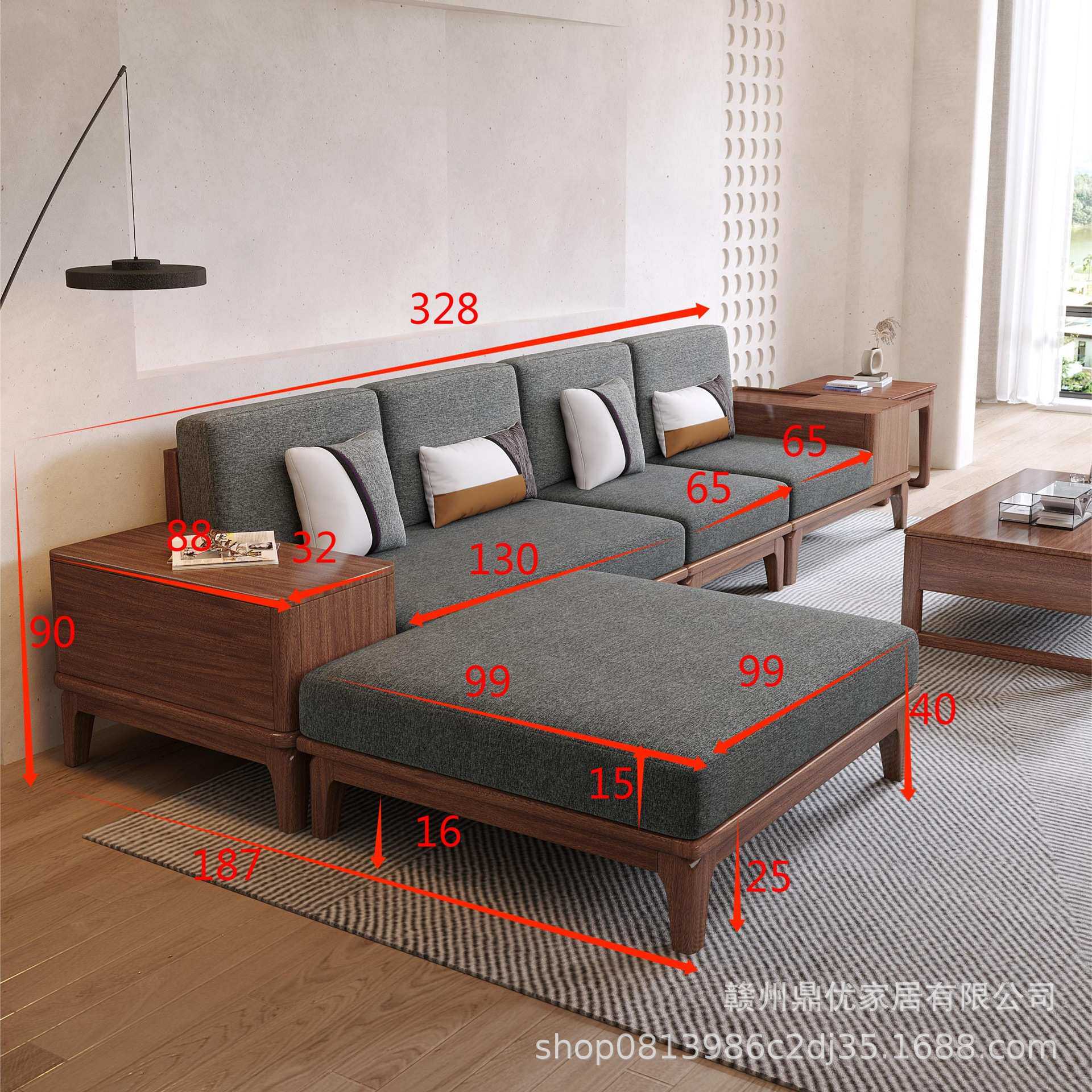 新中式胡桃木实木沙发现代客厅家具组合轻奢美学别墅布艺贵妃沙发