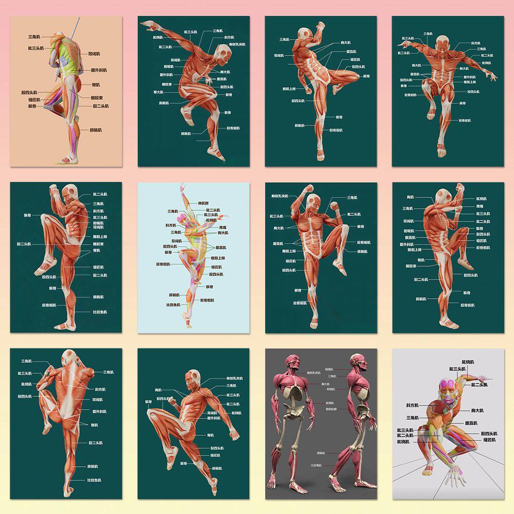 48张人体肌肉解析贴纸医学生系统解剖学贴纸装饰笔记本卡片粘贴