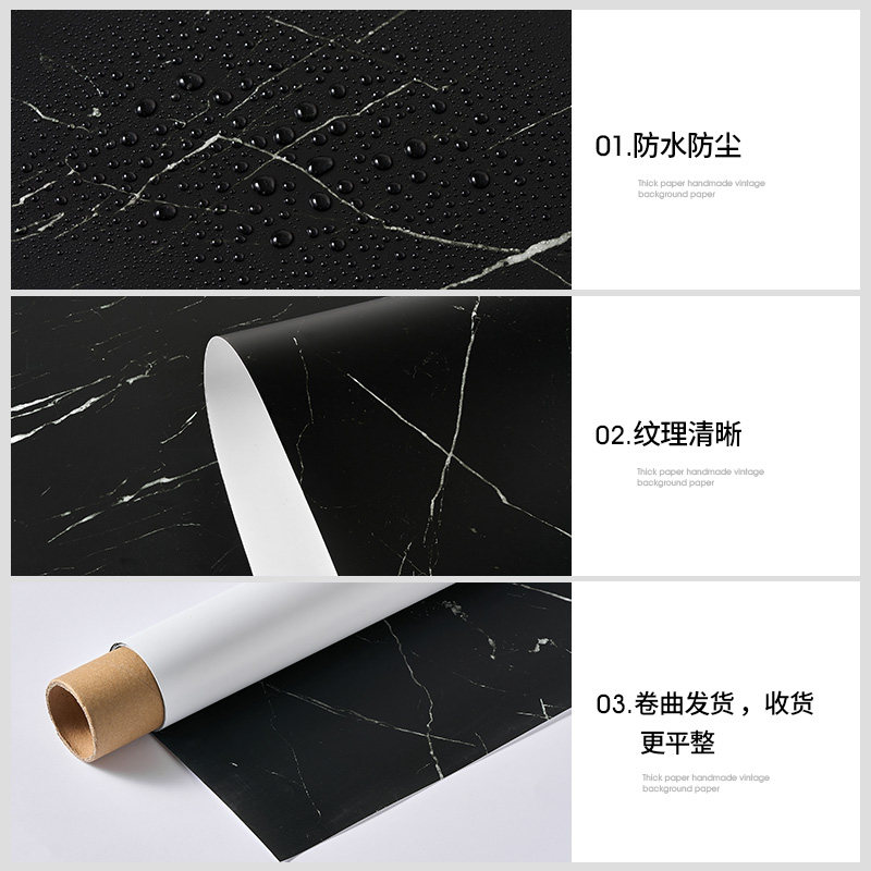 PVC大理石纹拍照背景纸 防水纹理摄影道具大尺寸黑色白色百搭高级感桌面背景家居场景布景布置美食直播拍摄