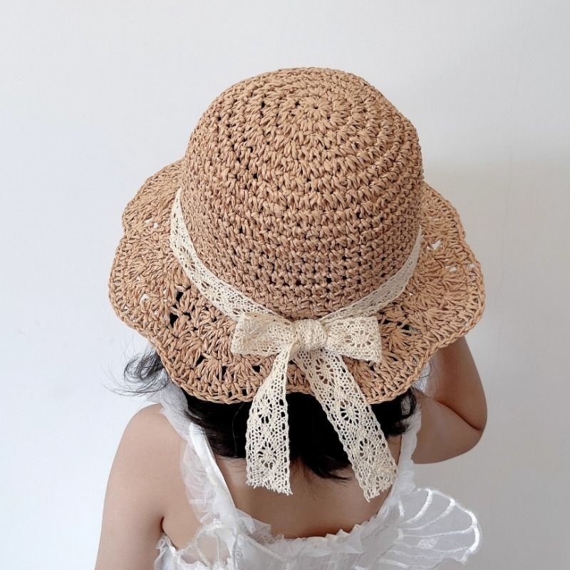 女童渔夫帽儿童遮阳帽宝宝帽子洋气太阳帽夏季防紫外线防晒帽草帽