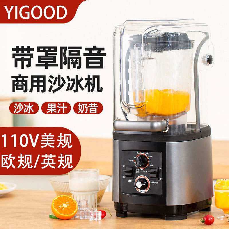 商用沙冰机带罩隔音110V大马力冰沙机榨汁机破壁机甜品店奶茶店用