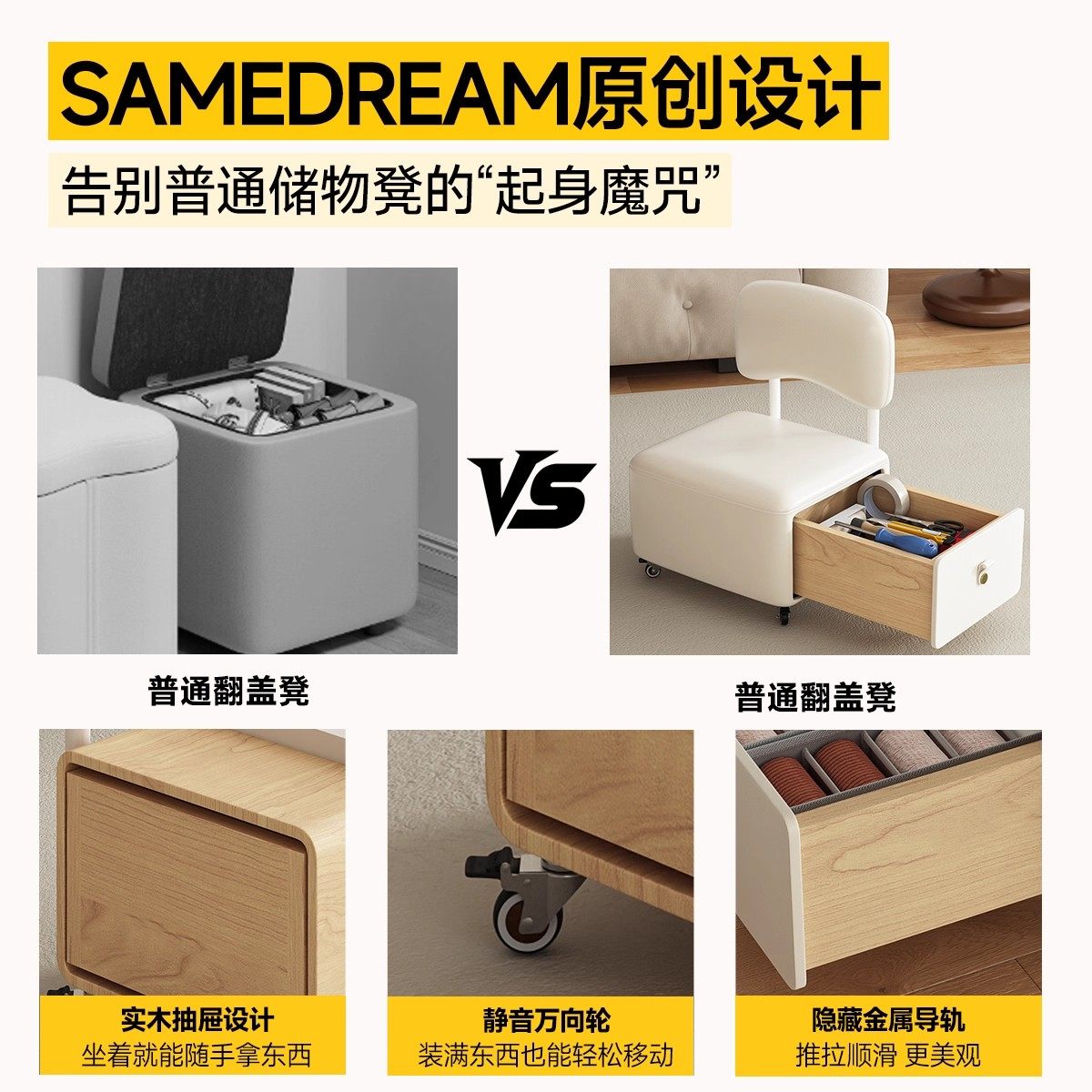 万向轮小凳子家用滑轮矮凳储物凳收纳凳换鞋凳客厅坐凳儿童靠背椅