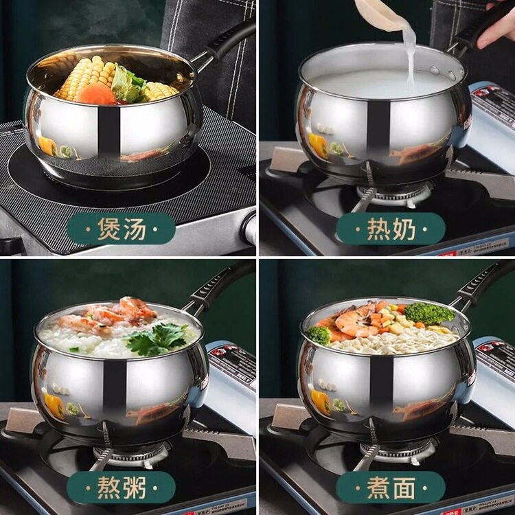 不锈钢汤锅奶锅加厚单柄家用商用厨房热奶煮粥煲汤泡面电磁炉礼品