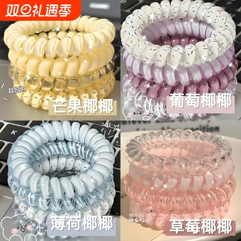 高品质葡萄椰椰波点电话线发圈夏天百搭发绳耐用皮筋女扎头草莓