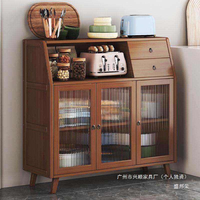 欧式高柜家庭厨房餐边柜实木多功能储物柜收纳柜子靠墙边一体