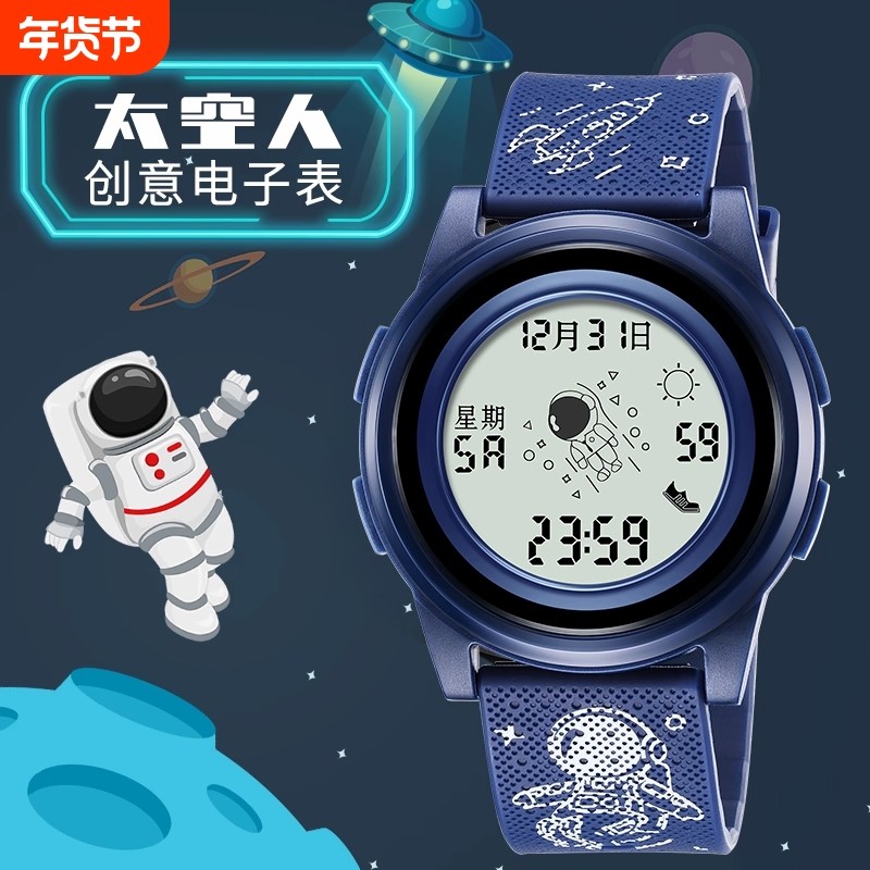 电子手表男女款初中高中学生儿童男生女孩运动智能游泳防水太空人