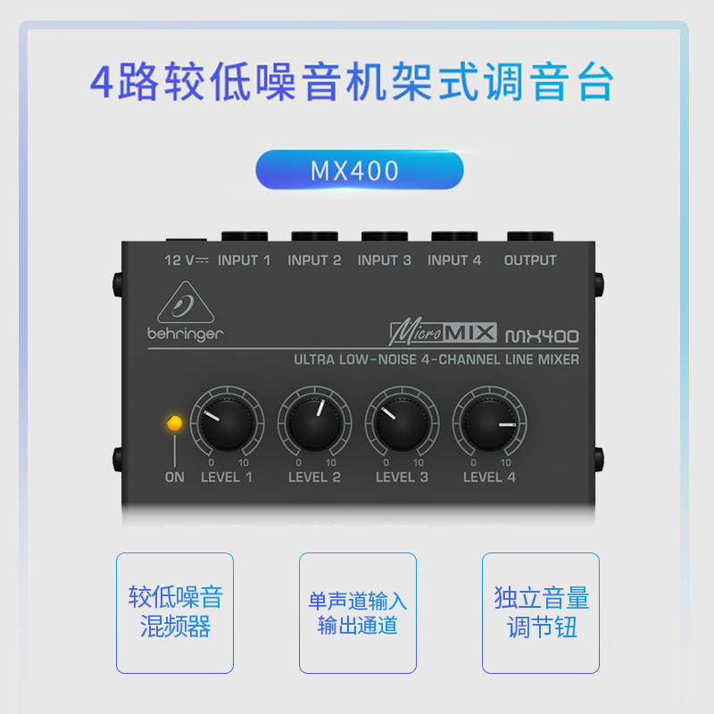 BEHRINGER 百灵达 MX400专业4路小型混音器直播K唱歌机架式调音台