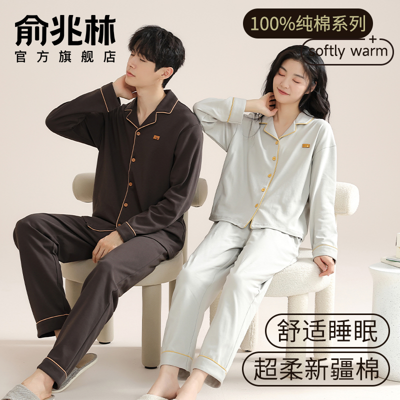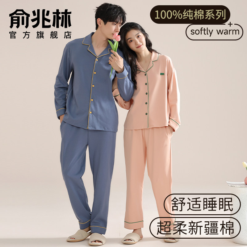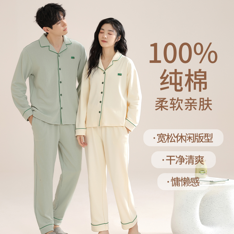 情侣睡衣女士春秋款2025新款纯棉全棉高级感男士睡衣可外穿家居服