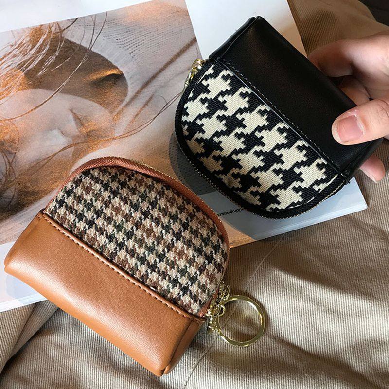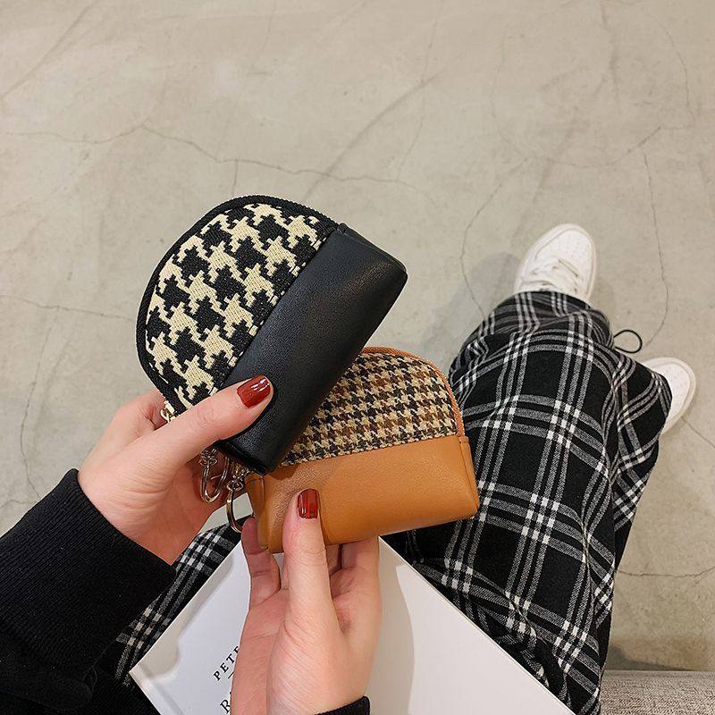 双层零钱包小钱包女款千鸟格小巧钱包迷你硬币包新款布艺收纳包