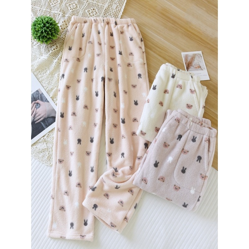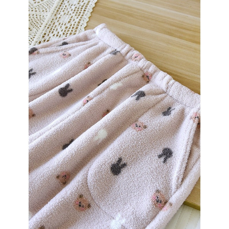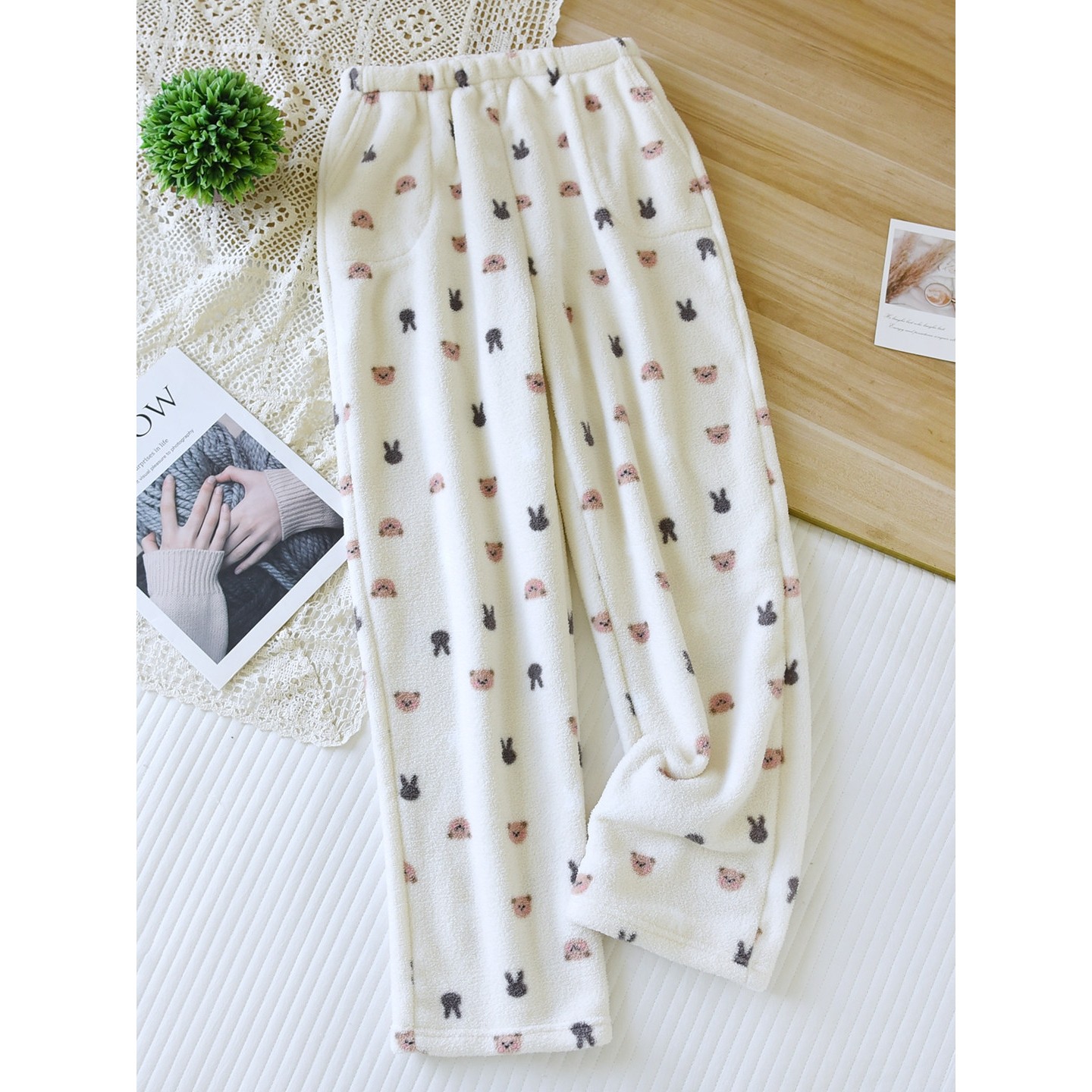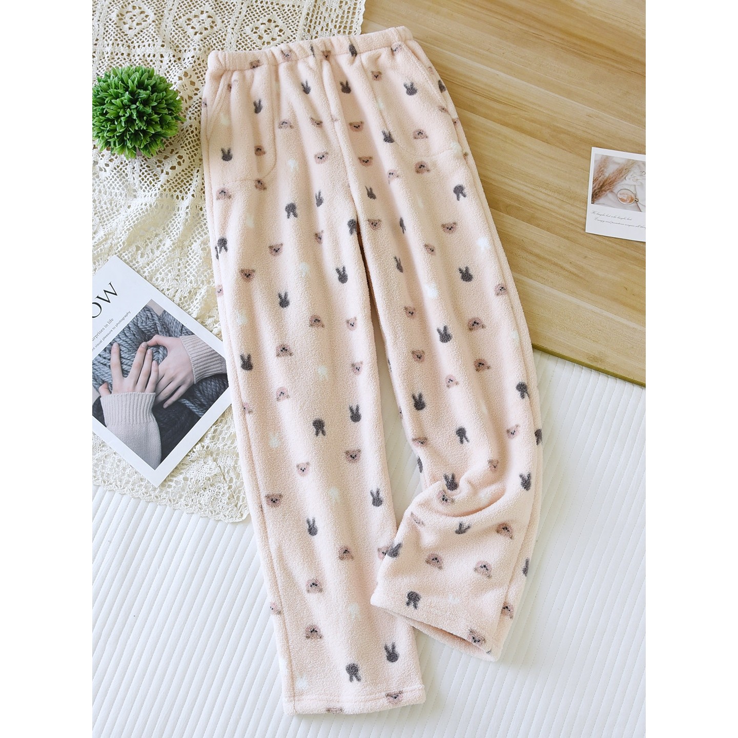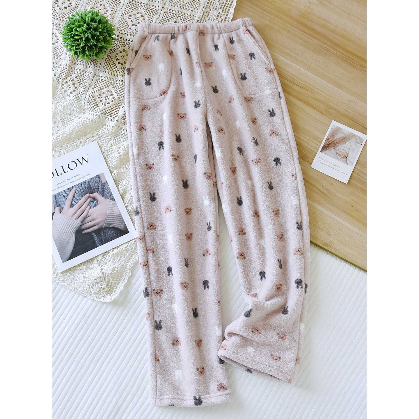 红豆冬季睡裤女珊瑚绒长裤保暖加绒加厚口袋2025新款薄冬天直筒家