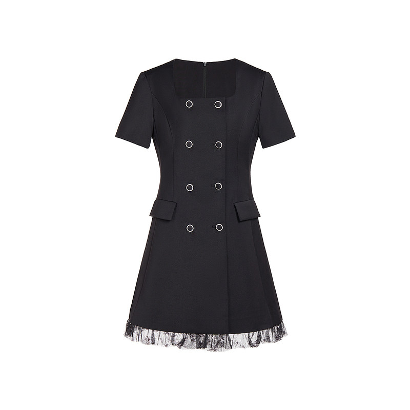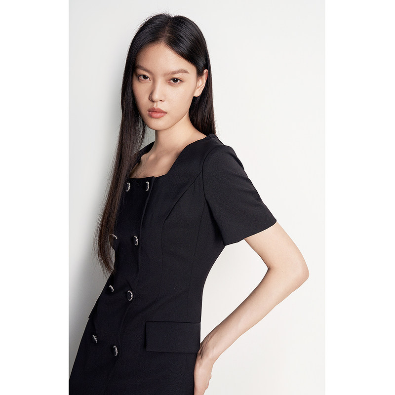 法式方领西装短袖连衣裙 ochirly欧时力2024新款夏装小黑裙通勤