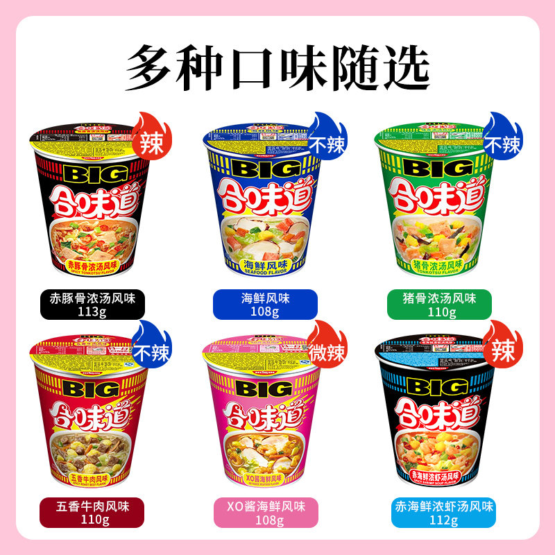 日清合味道大杯big杯合味道杯面整箱海鲜豚骨XO酱虾仁方便面泡面