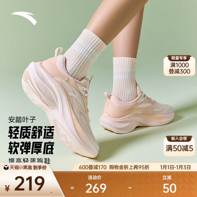 安踏叶子5丨厚底跑步鞋女冬季透气轻便回弹轻质运动鞋增高女鞋子