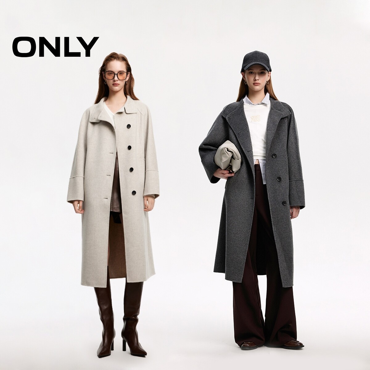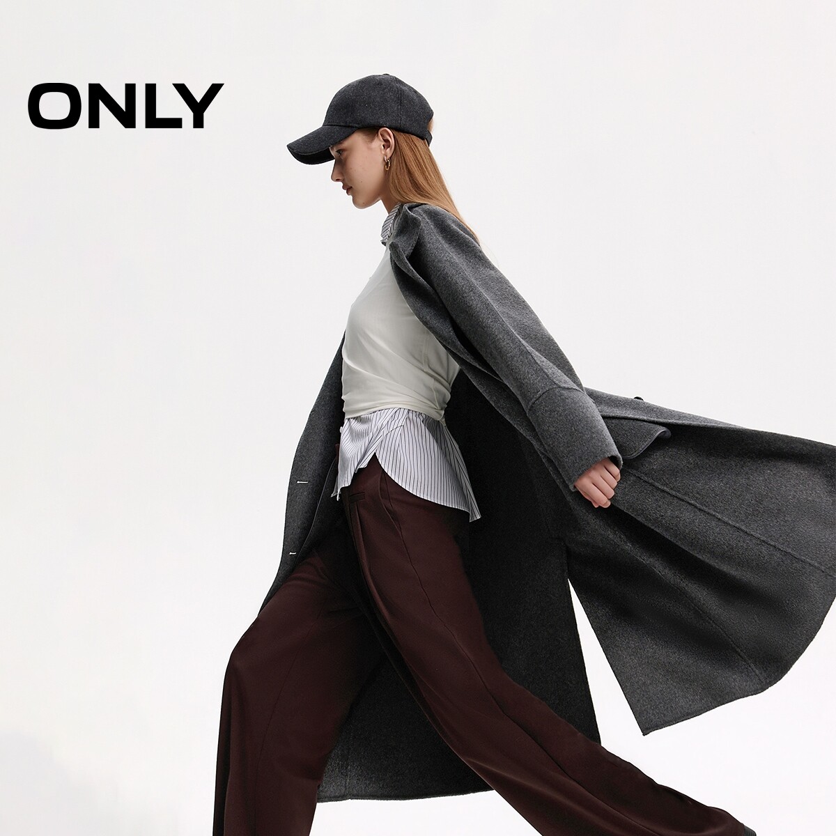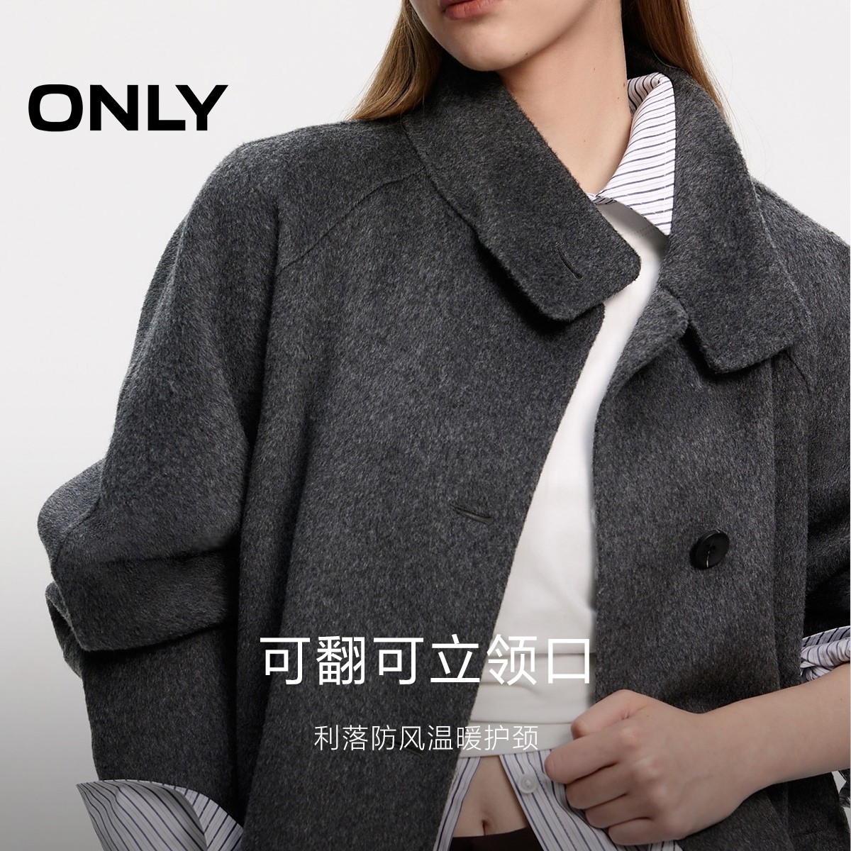 【ONLY奥莱】春季新款双面呢100%绵羊毛长款毛呢大衣女