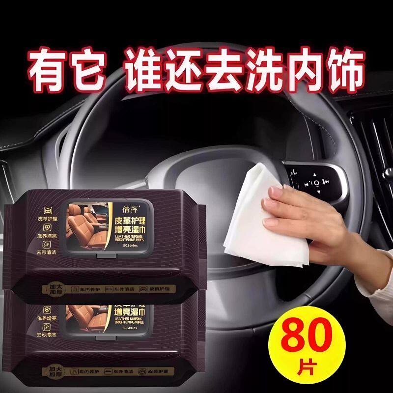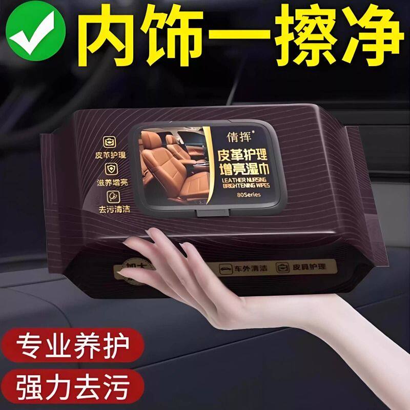 汽车内饰皮革护理清洁湿纸巾车载镀膜湿巾擦车洗神器皮盒擦拭专用
