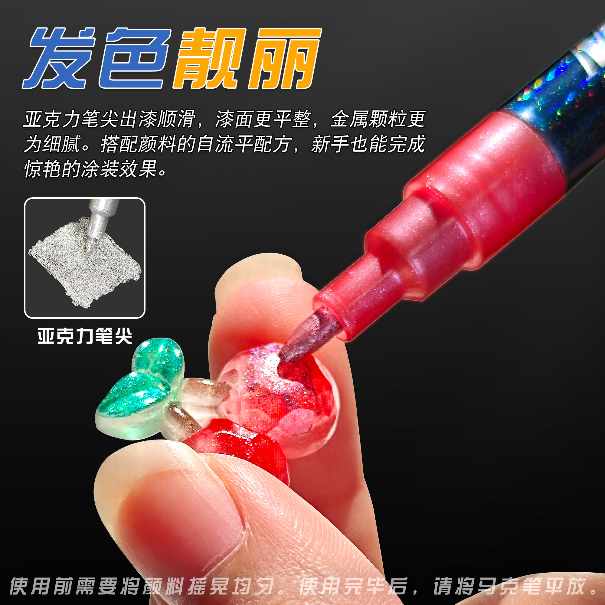 镭射珠光马克笔高达军模手办涂装上色笔流星补漆笔模型补色0.7细头防水不掉色丙烯马克笔涂装工具高光油漆笔