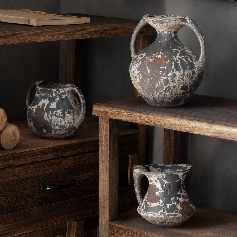 景德镇侘寂风陶瓷花瓶斑驳复古粗陶罐客厅样板间桌面插干花装饰品
