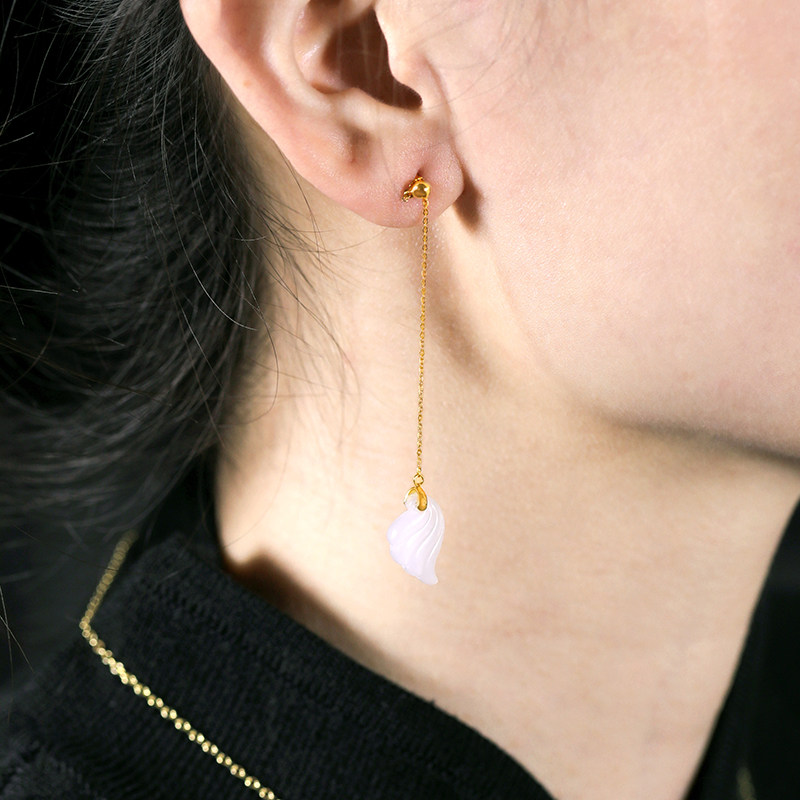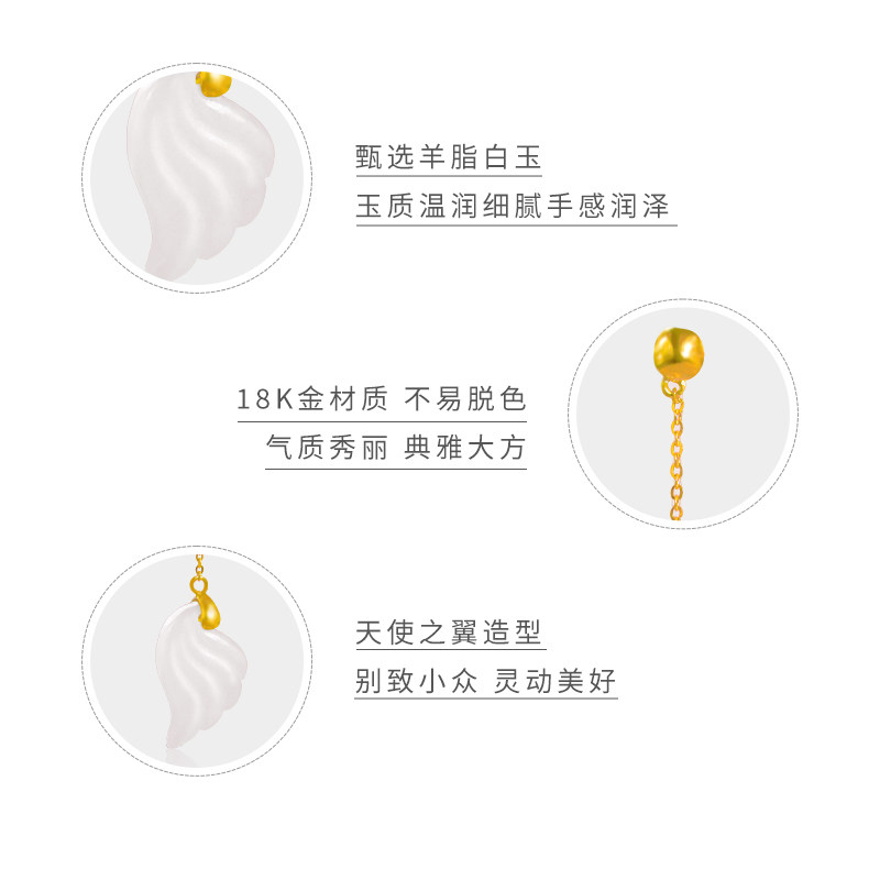 和合玉器18k金和田玉羊脂白玉天使之翼翅膀耳线耳环耳钉简约气质