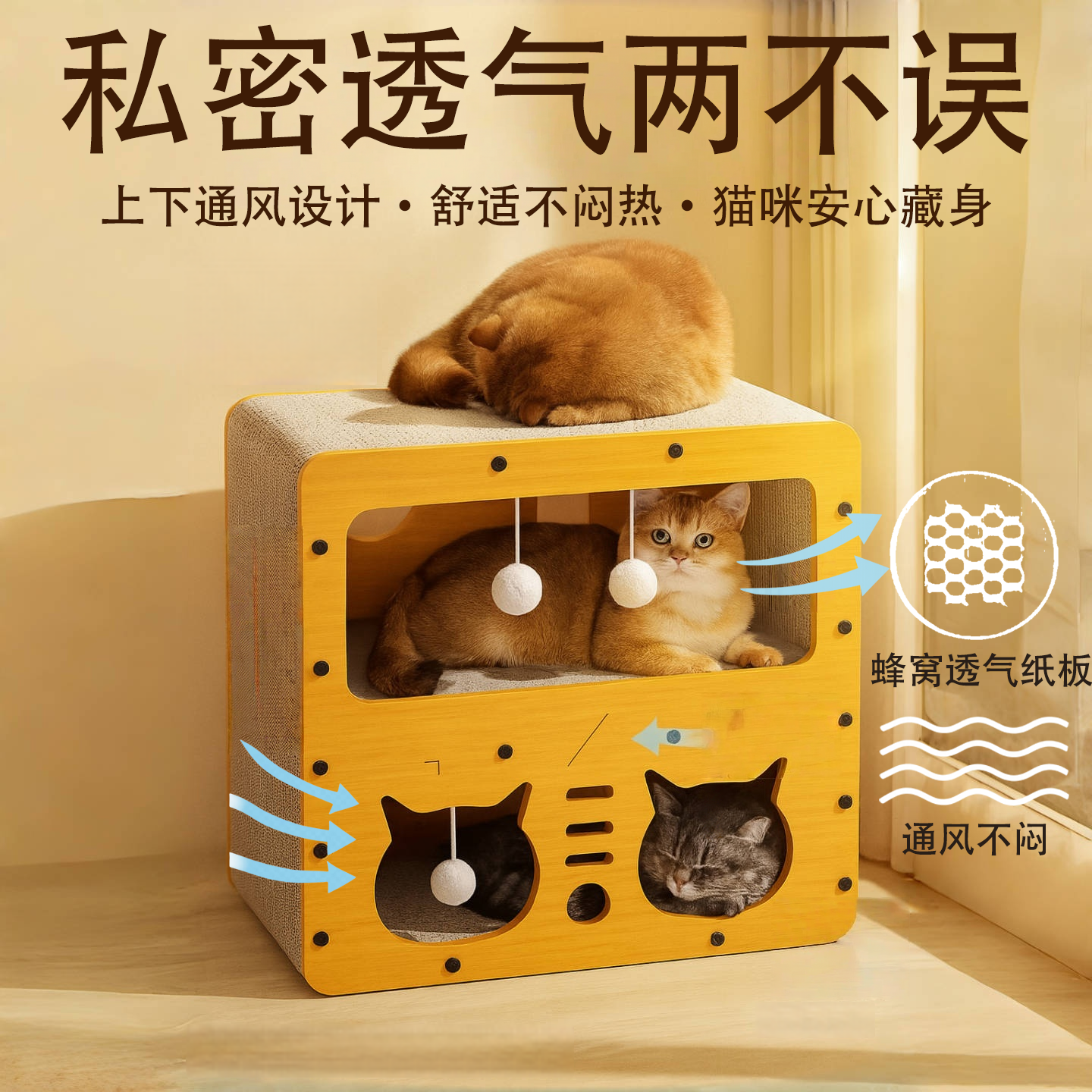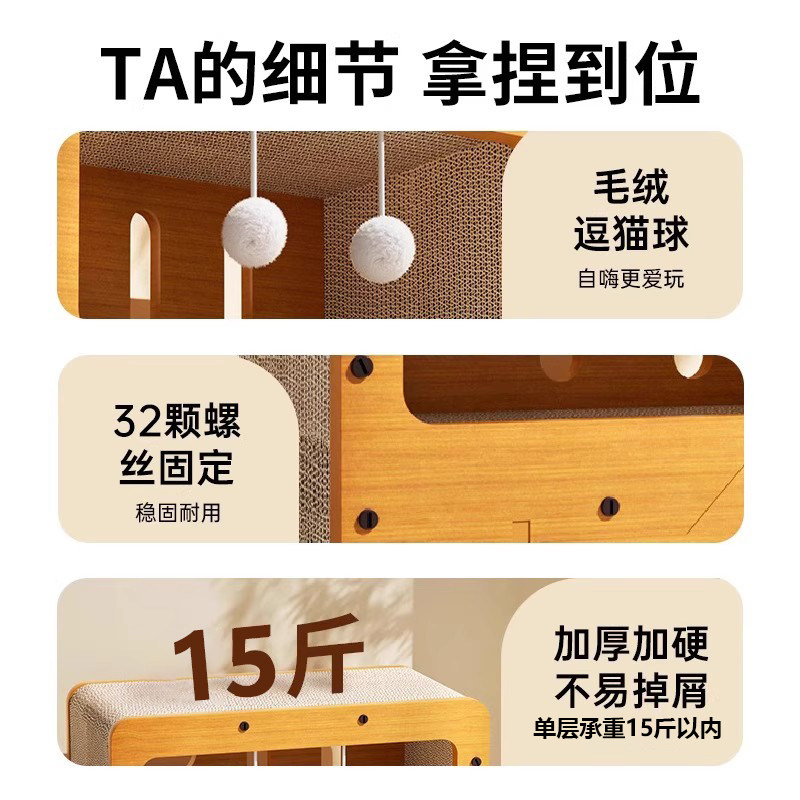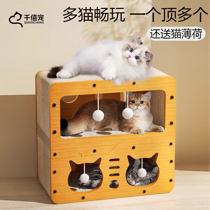 猫窝猫抓板一体耐磨不易掉屑上下两层四季通用别墅猫爬架猫爪板