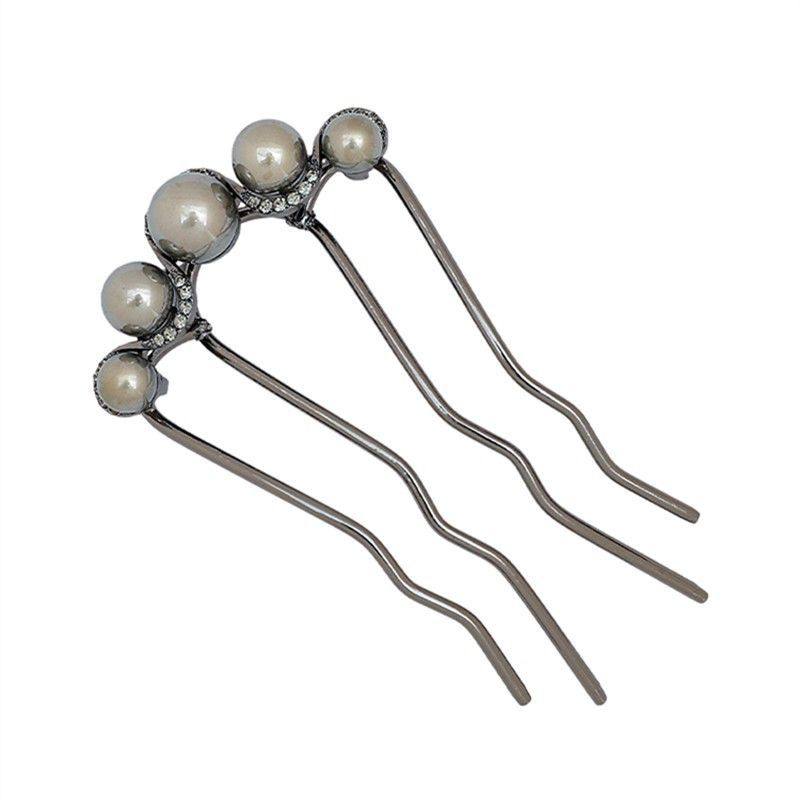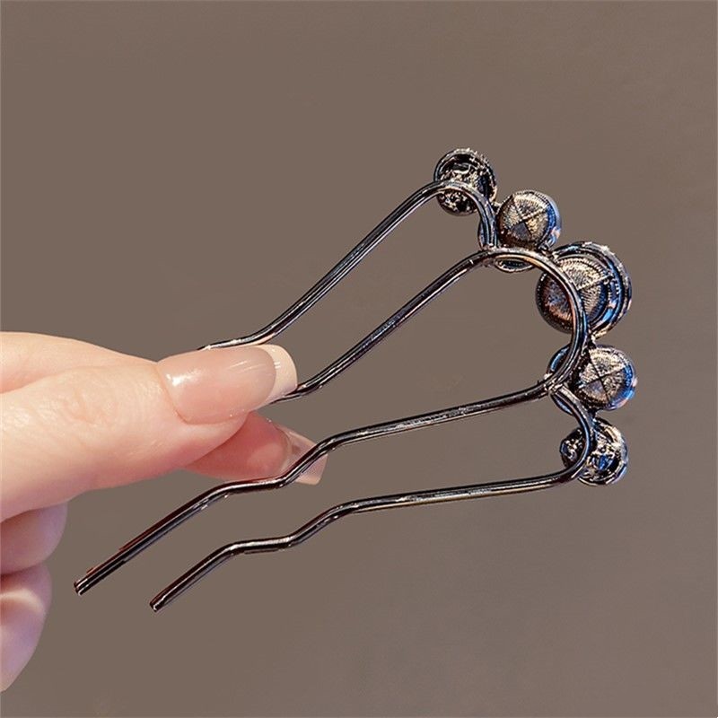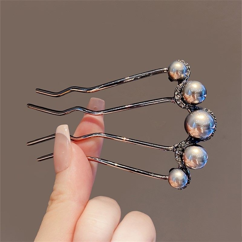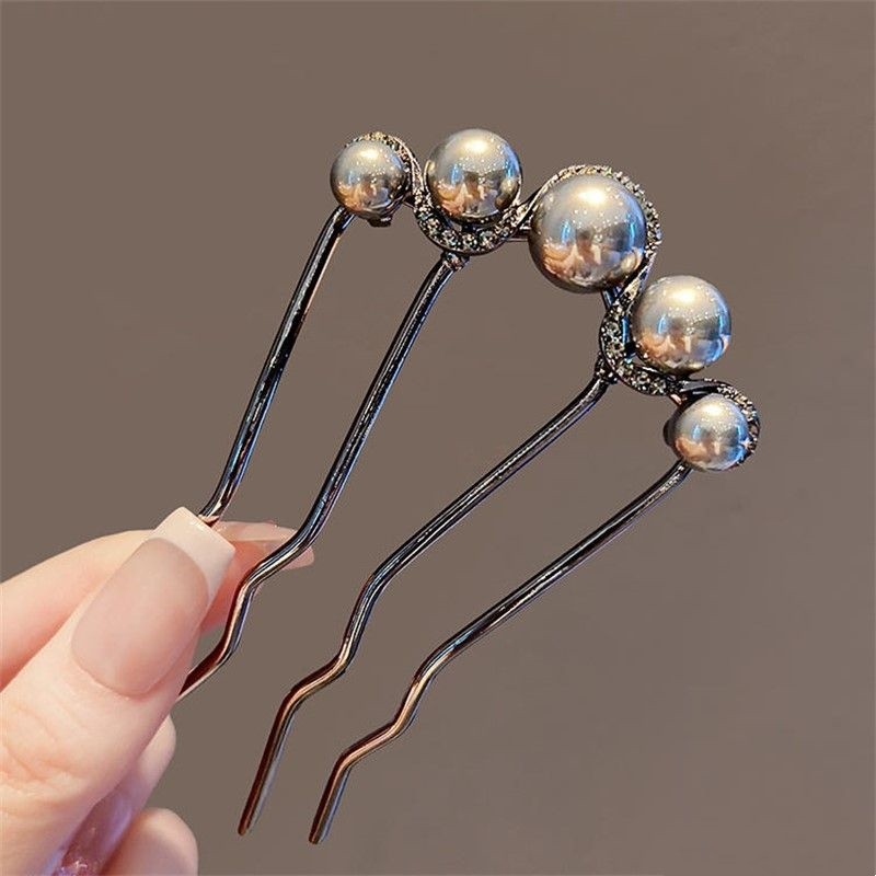 珍珠u型发簪新中式枪黑色插梳发钗古风高级感簪子盘发钗神器头饰