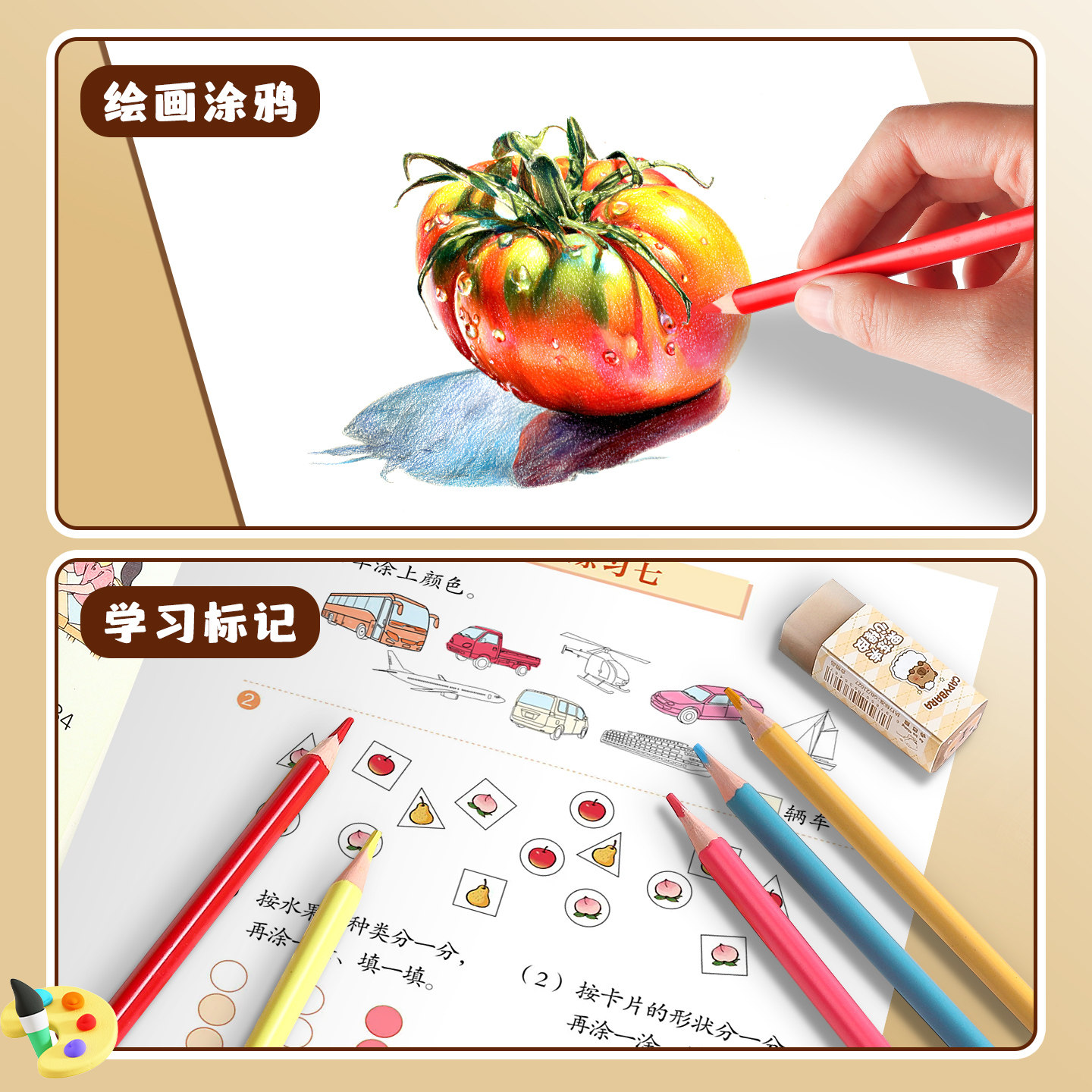 可擦彩色铅笔小学生专用一年级美术素描画画彩铅48色幼儿园儿童填色涂鸦笔12色初学者绘画套装手绘涂色彩笔