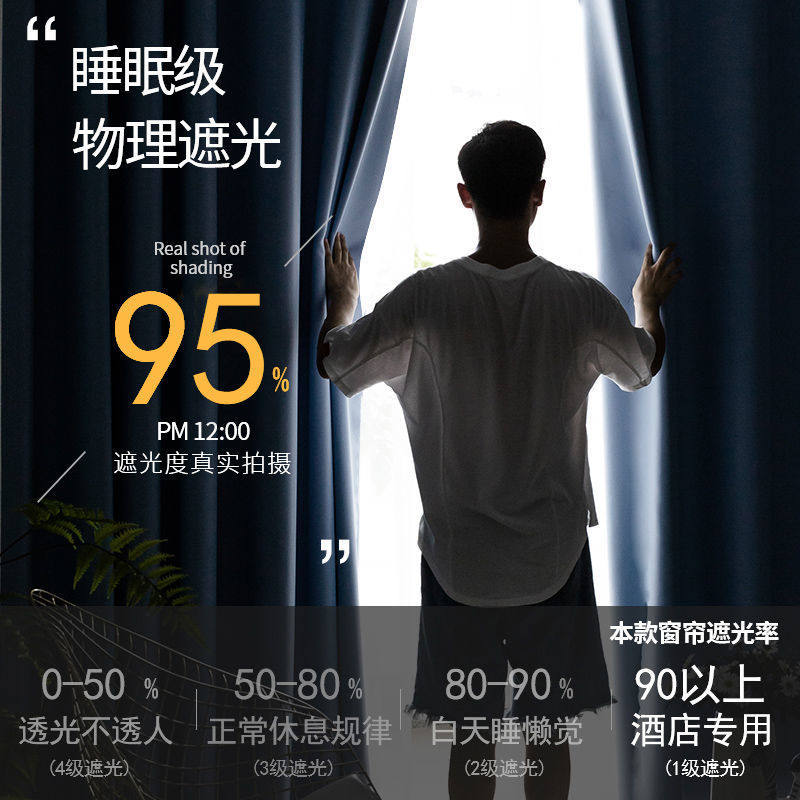 高精密窗帘挂钩款强遮光遮阳布防晒落地帘2025新款全遮光隔音黑丝