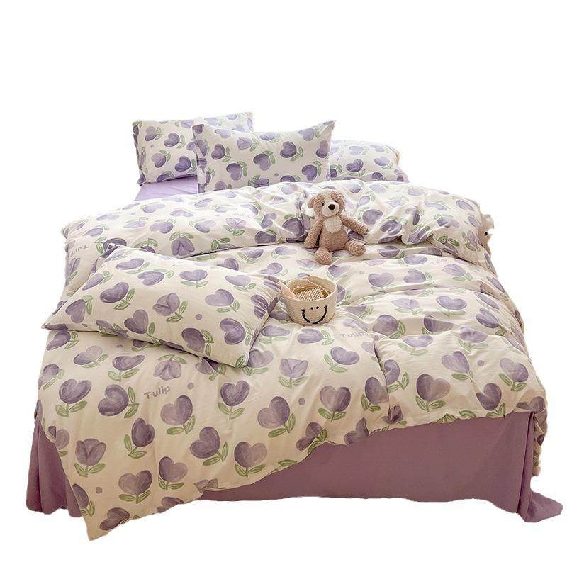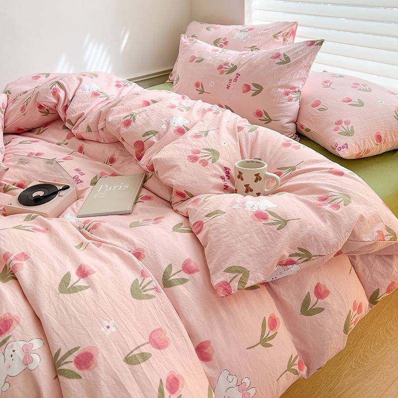 A类裸睡四件套母婴级isn纯棉宿舍三件套清新水洗棉被套床笠款