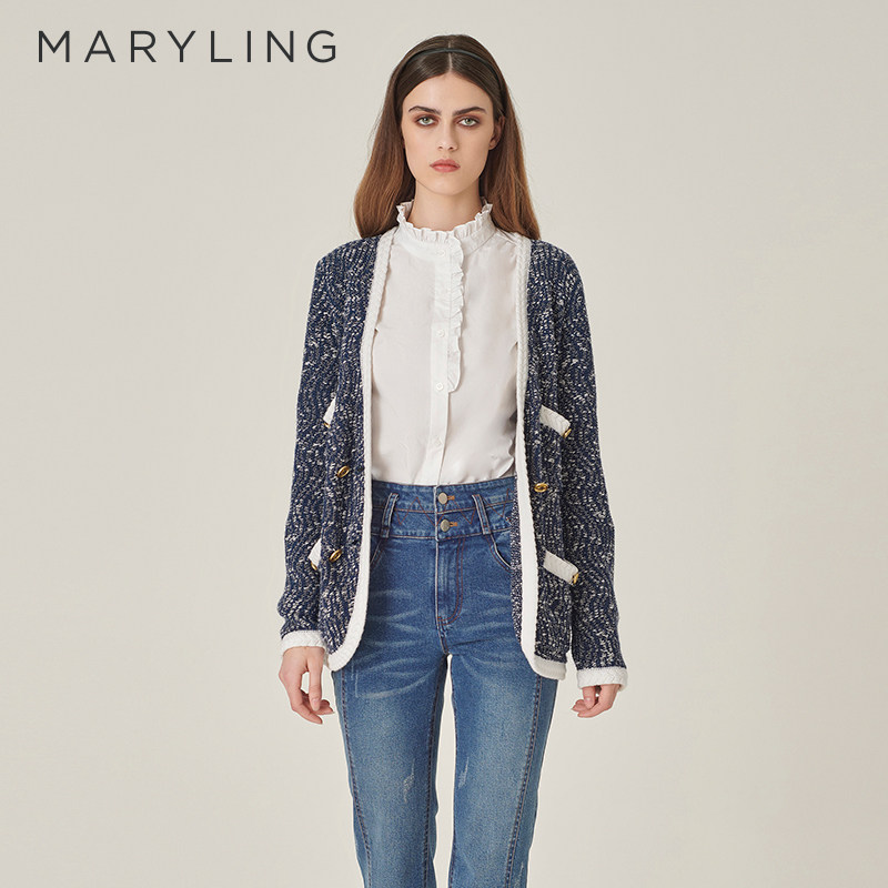 MARYLING玛俪琳秋季新品粗花呢肌理V领针织开衫A1EGW09380