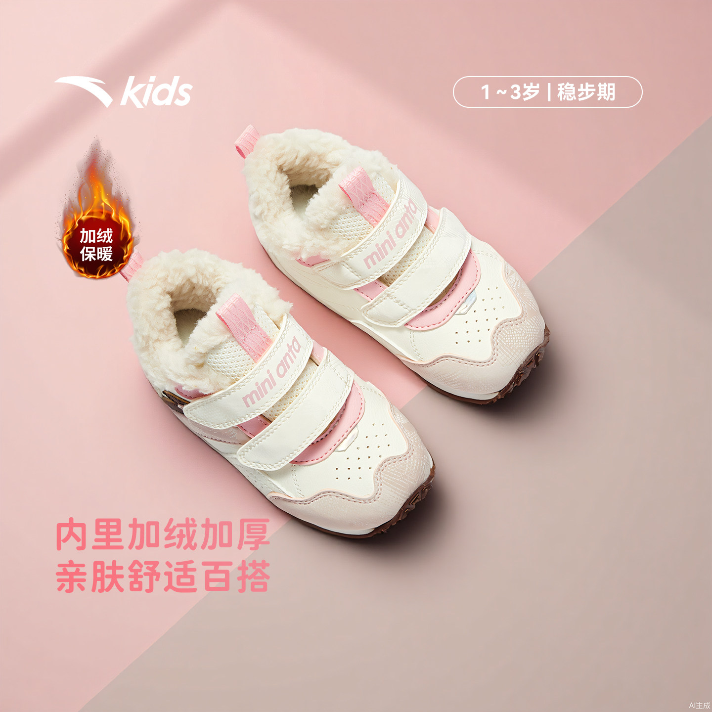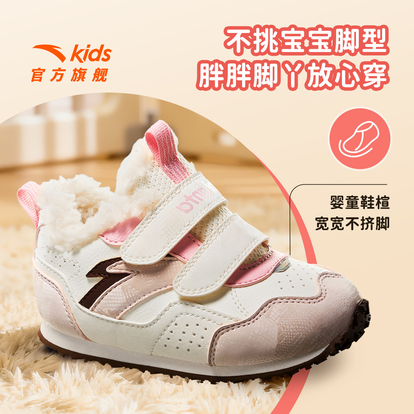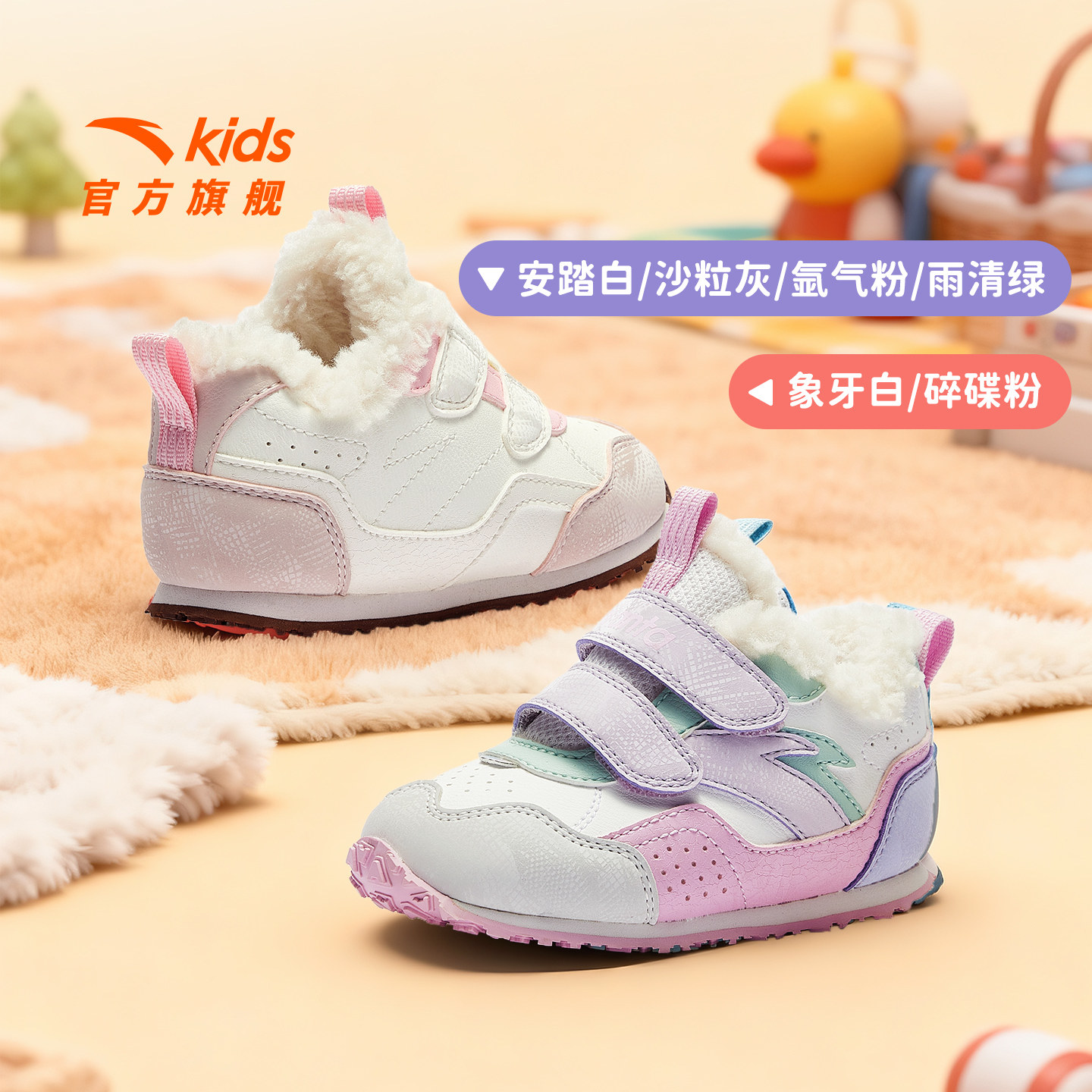 安踏学步鞋二阶段女宝宝鞋子2025冬季新款幼儿园软底加绒保暖棉鞋
