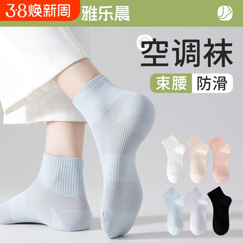无骨袜子女士短袜夏季薄款网眼凉感透气纯色无骨中筒袜夏天短筒袜