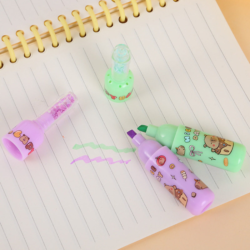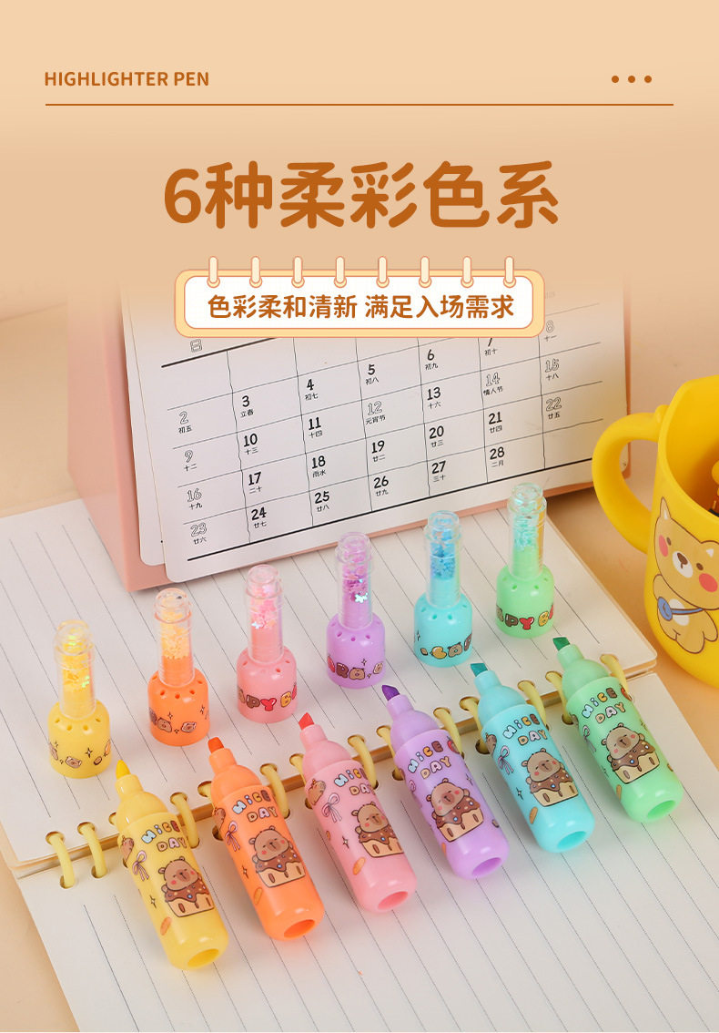 卡皮巴拉水豚荧光笔彩色画重点笔标记笔涂鸦笔彩笔6色套装护眼色