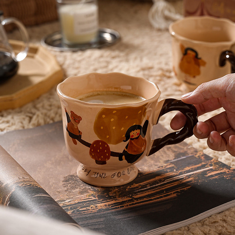 复古艺术感杯子家用喝水马克杯女生水杯办公室陶瓷杯咖啡杯早餐杯