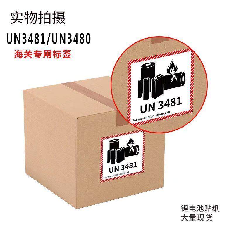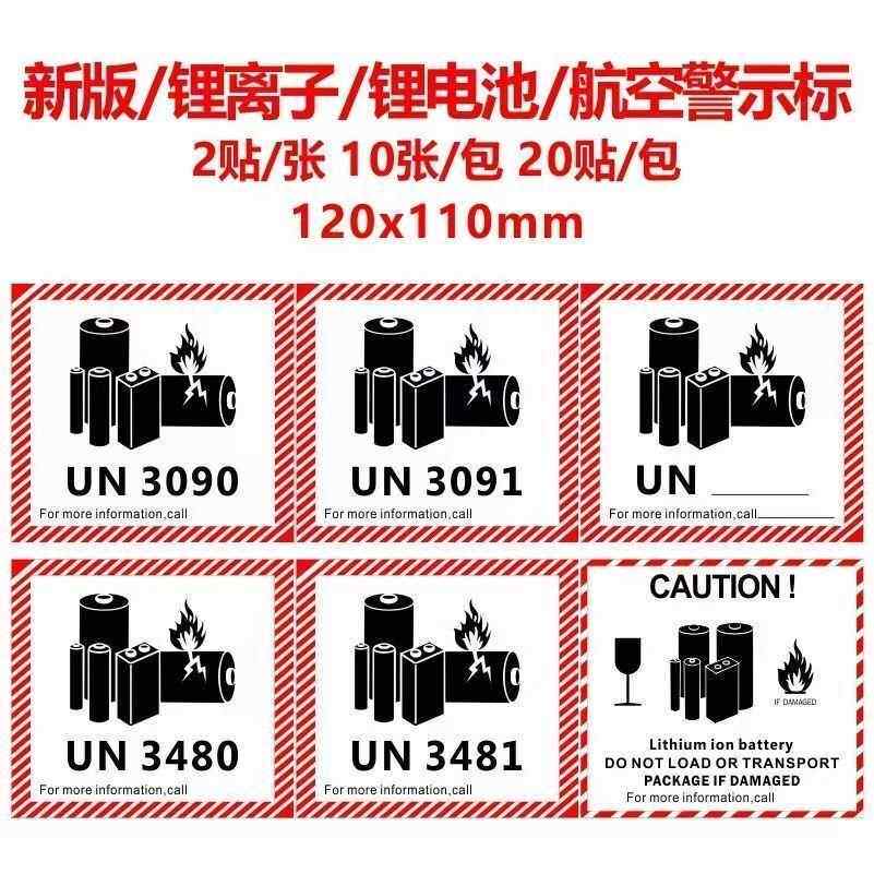 新版锂金属电池标航空警示标签防火易碎空运封箱贴纸UN3481/3091