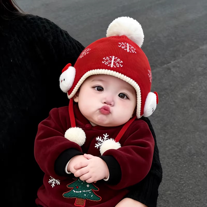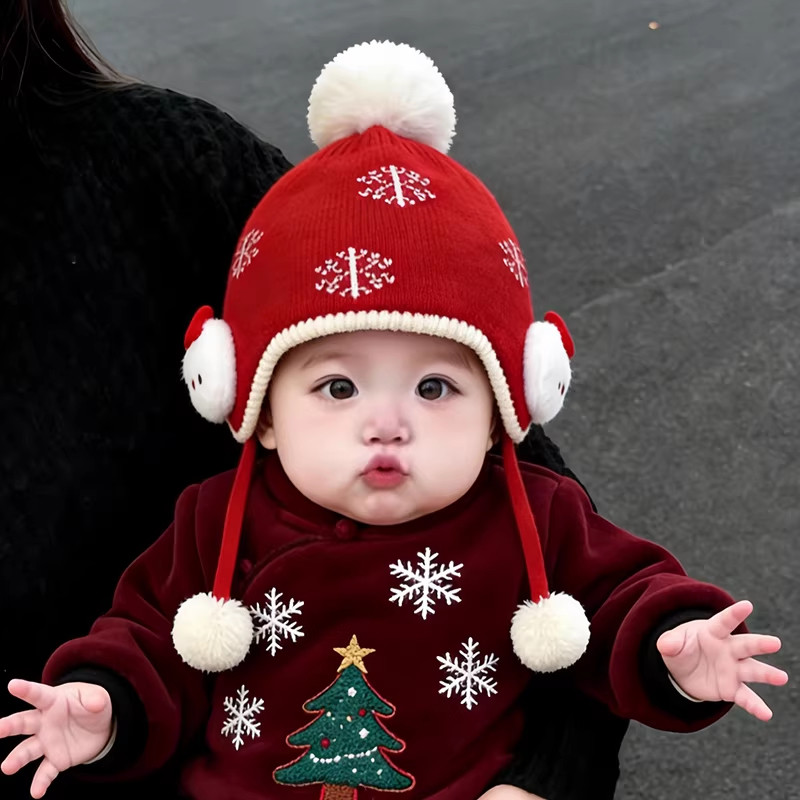 婴儿帽子秋冬季宝宝毛线帽儿童红色针织帽女童护耳婴幼儿冬季加厚