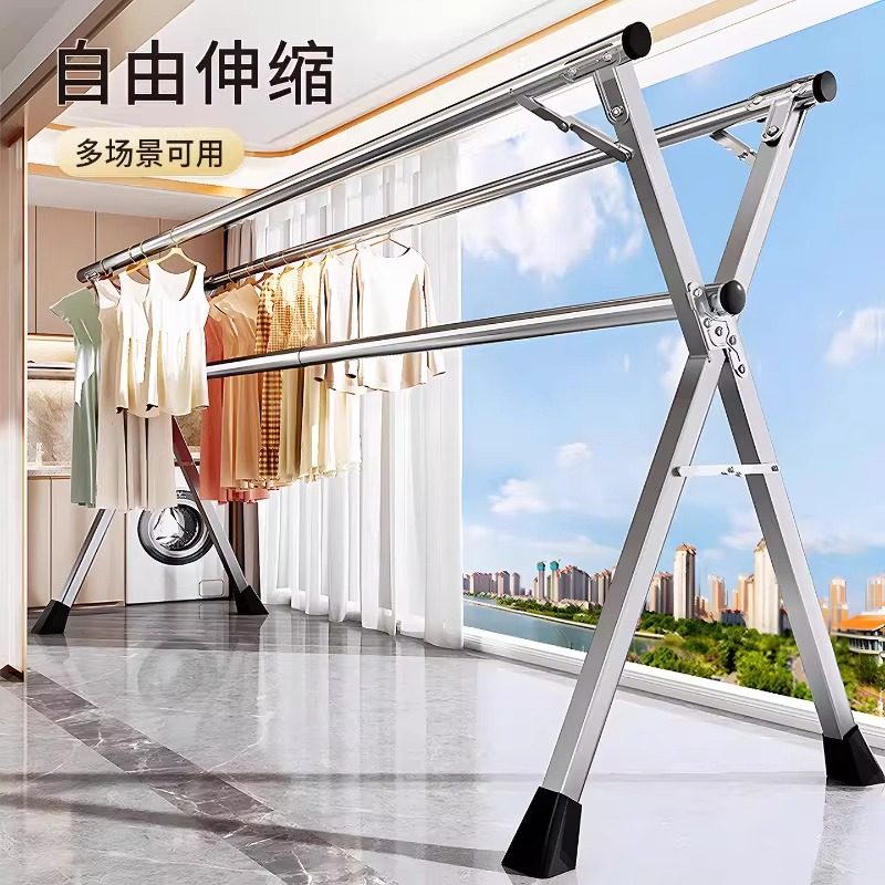 落地晾衣架折叠不锈钢家用阳台室内室外伸缩凉衣杆室内晒被子神器