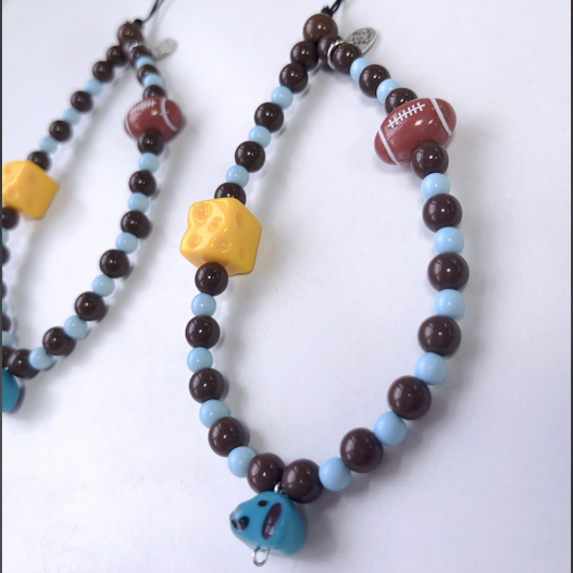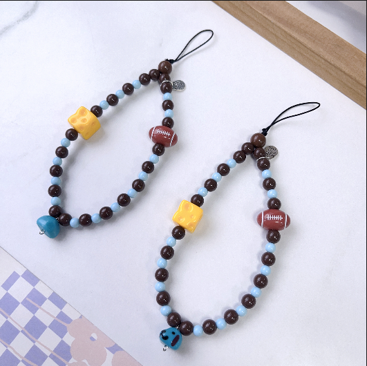 手机链小狗橄榄球可爱卡通奶酪简约时尚纯手工彩色串珠ccd相机适用通用手机壳挂手腕手提防丢防摔女士手机绳