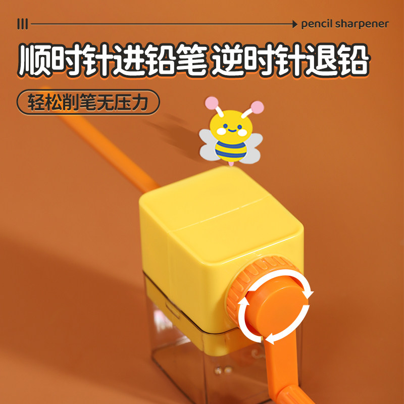 中华好学生卡通小蜜蜂糖果色削笔器儿童自动进笔手摇式卷笔刀小学生专用可爱便携削笔刀小巧迷你削笔机幼儿园