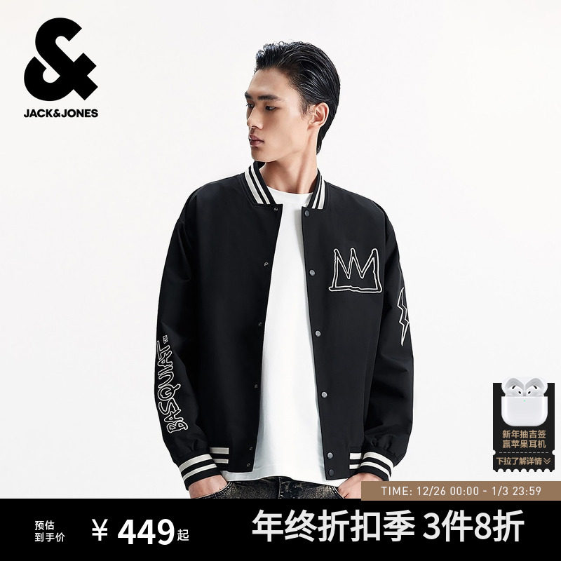 杰克琼斯BSQ联名款男装秋季新款字母刺绣休闲宽松棒球服夹克外套