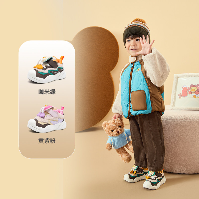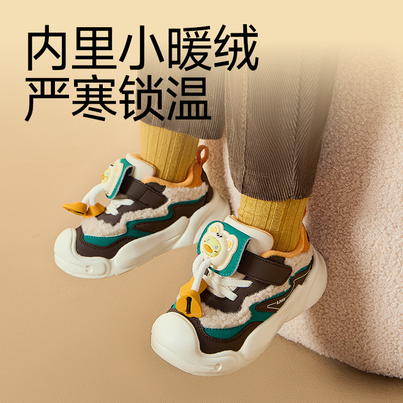 小黄鸭童鞋2025冬季加绒保暖男童棉鞋防踢宝宝学步鞋女童休闲鞋子