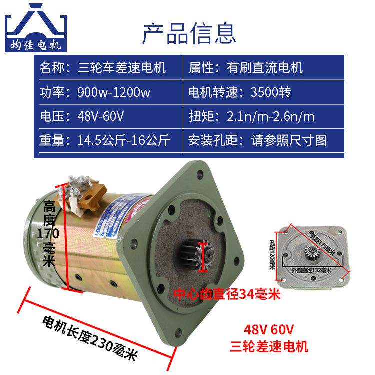 供应均佳牌电动三轮车差速电机建筑工程车拉坯车有刷直流串励电机