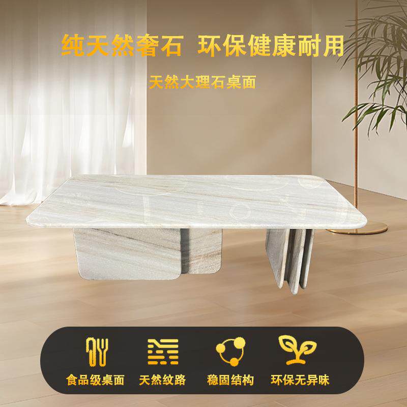 香雪梅天然大理石餐桌意式轻奢长形全石材高端别墅长方型奢石茶几