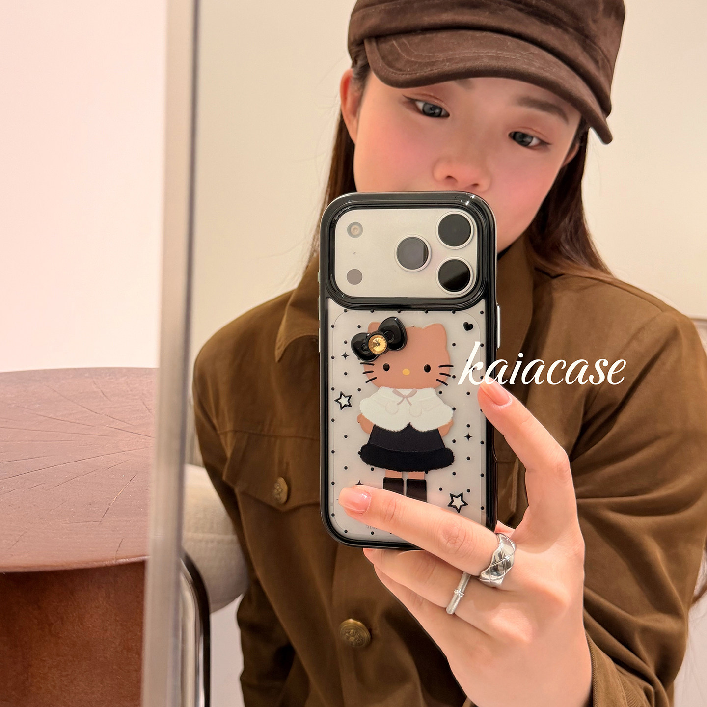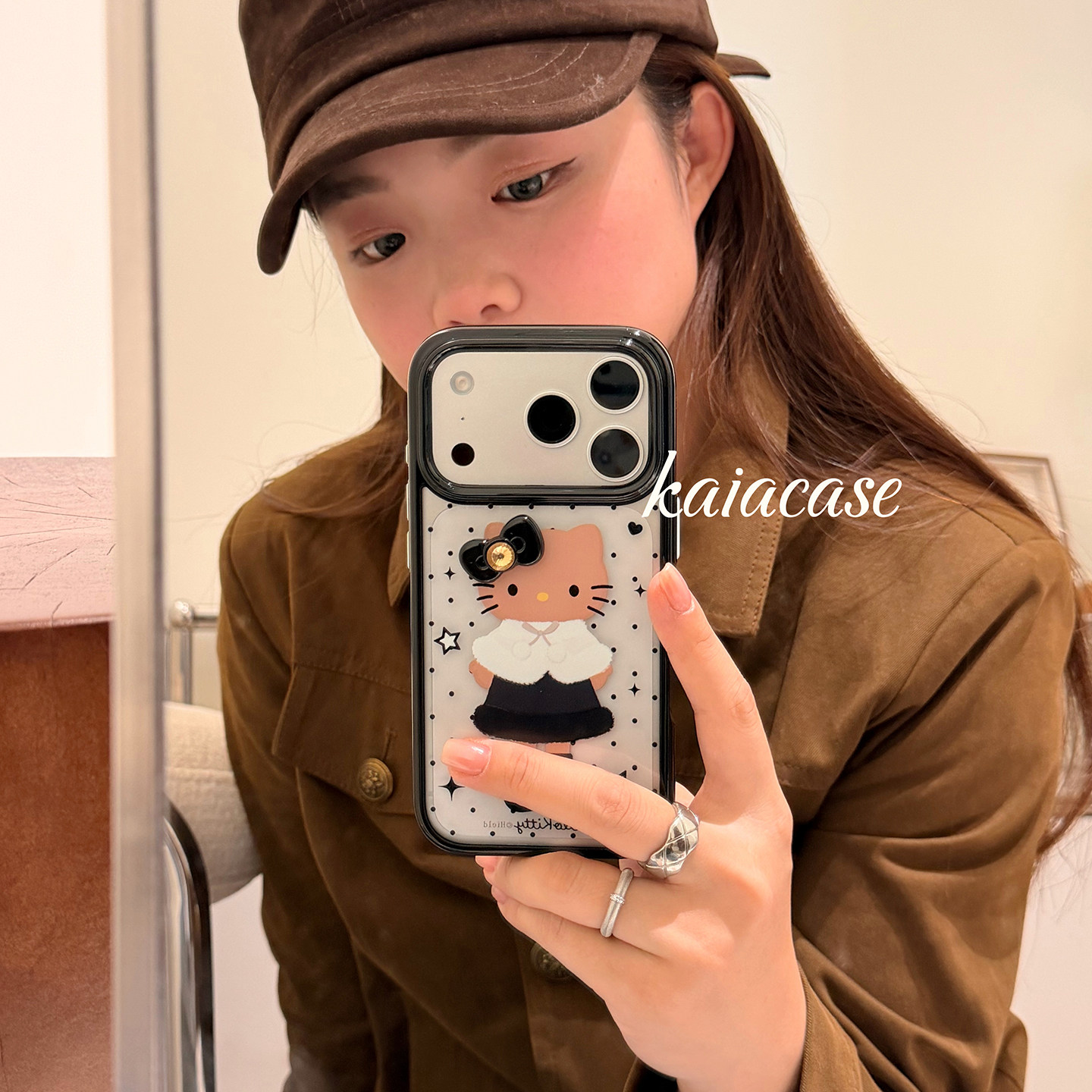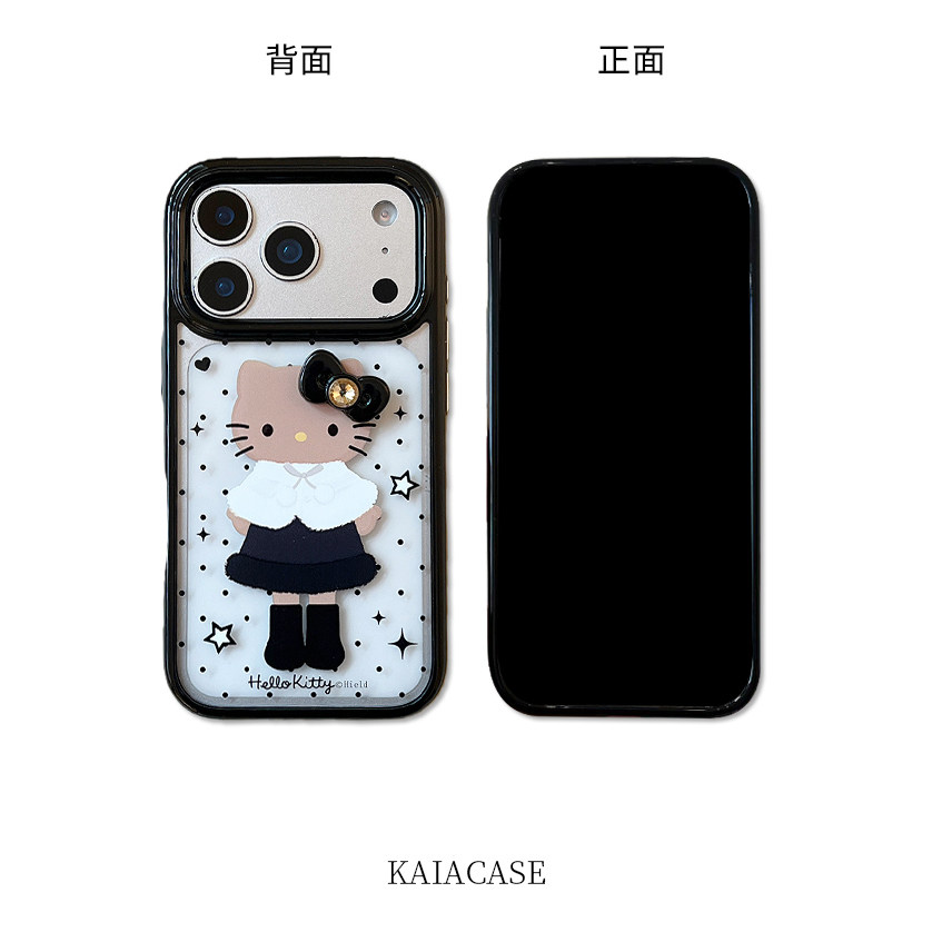 kaia时髦ins波点变装哈喽kt蝴蝶结适用苹果17promax手机壳iphone16pro新款15女14pro创意15pro全包防摔手机套