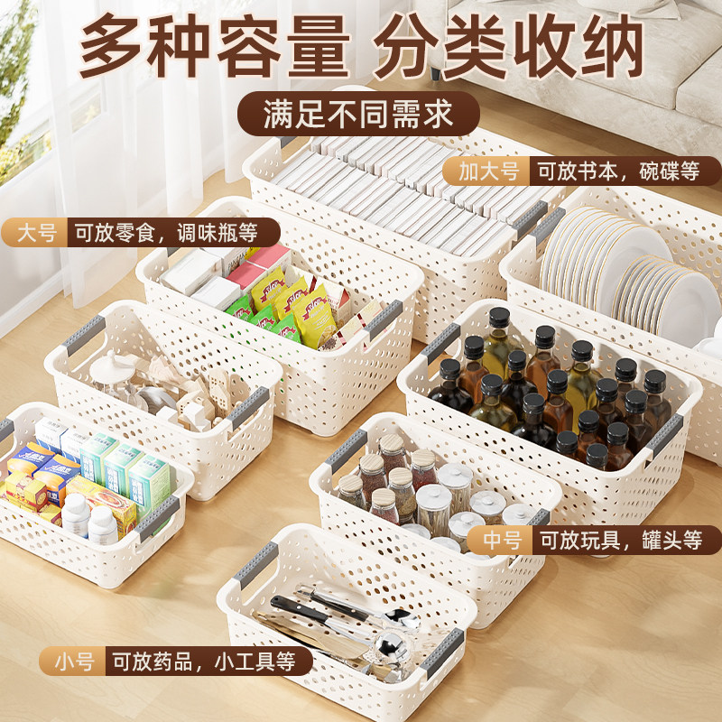 零食玩具收纳箱家用杂物整理筐大容量书本储物篮厨房多功能塑料盒