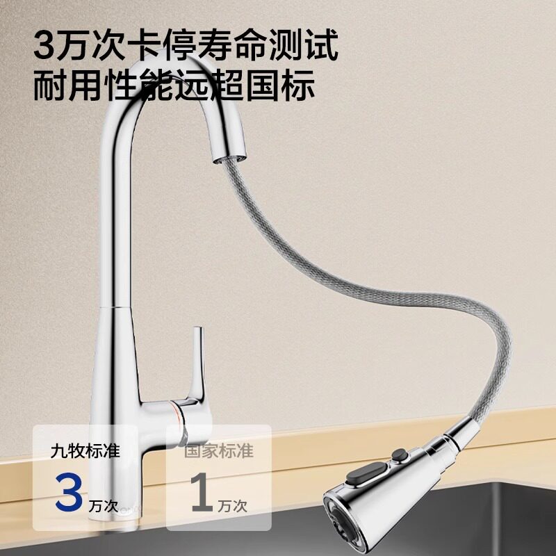 九牧洗菜盆厨房水龙头可抽拉式冷热伸缩万向旋转防溅专用洗碗水槽